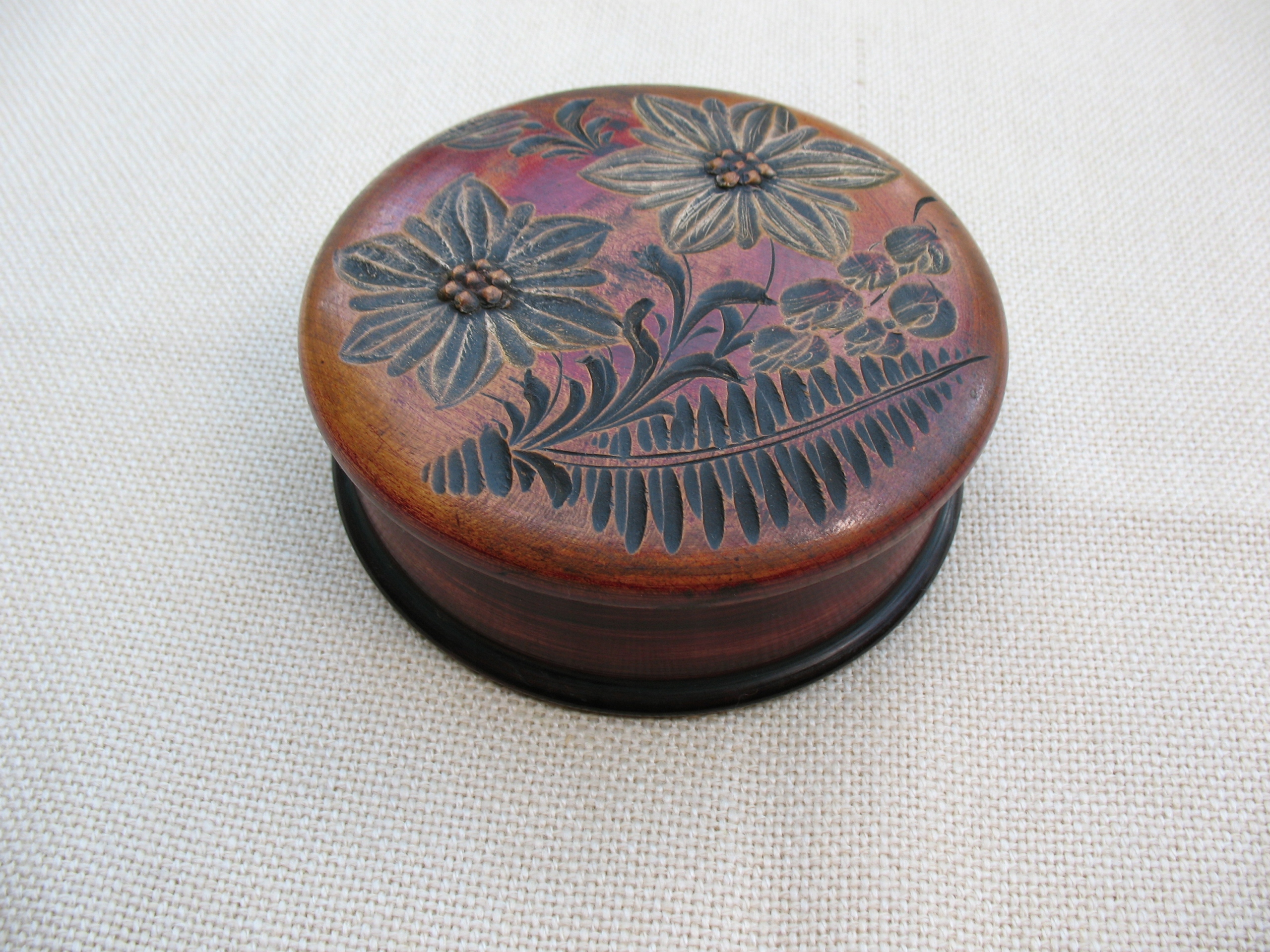 Стара, оригінальна, довоєнна скринька - Сувенір з Радзехової. Оригінал. Предмет з дерева, ручної різьби та розпису. Датування: міжвоєнні роки. Діаметр: 120 мм. Стан: на мій погляд хороший, невеликі забруднення, потертості, подряпини, все видно на сканах. Не соромтеся робити покупки.