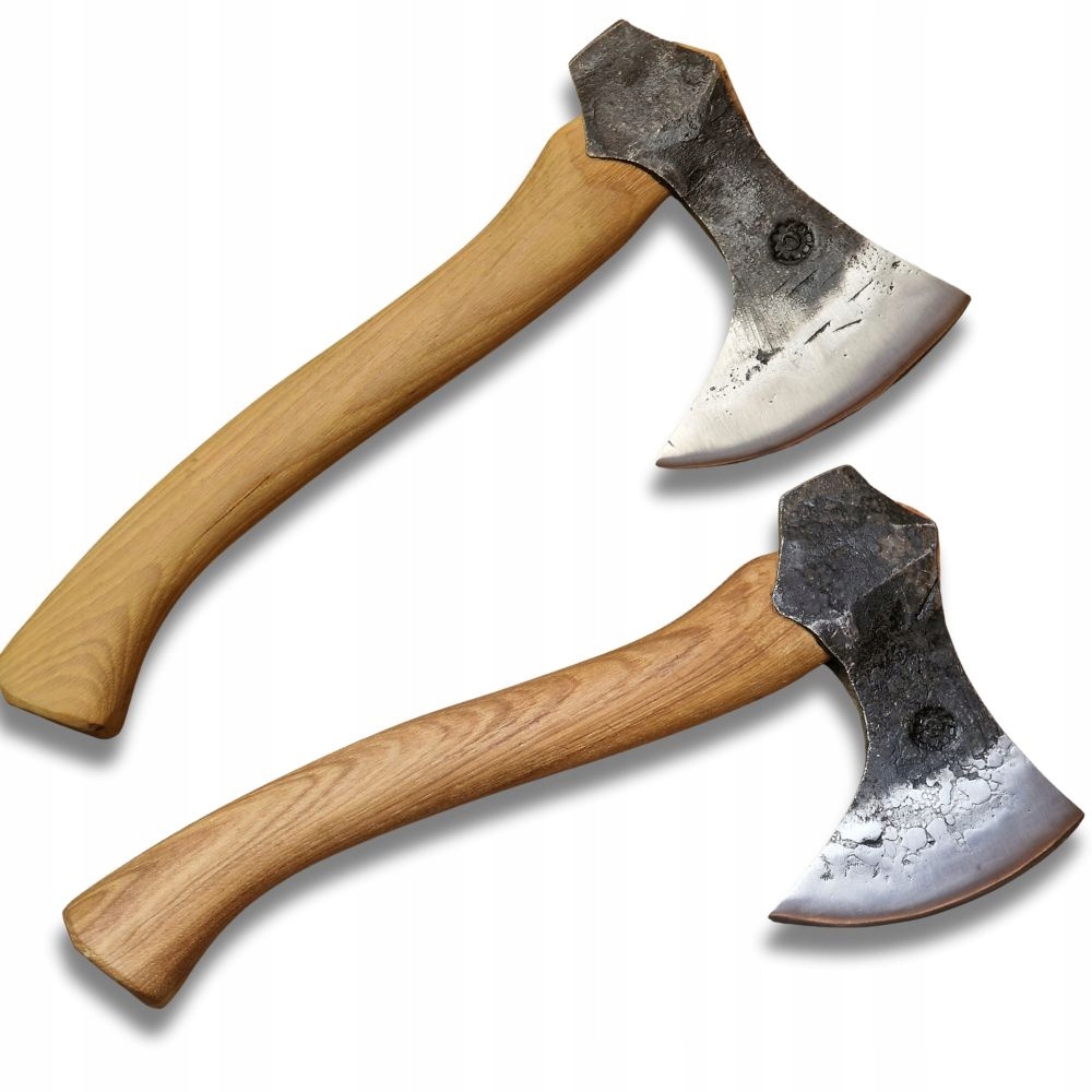 Голова з вагою прибл. 450 г, вирізаний з пружинної сталі 51CRV4, затверділи до приблизно. 55 HRC та утворені осей, відомі для північного провисання. Лезо має злегка вигнутий профіль, який ідеально скорочує та клініки, і чітко позначена борода дозволяє ефективно маневрувати інструментом під час розділення тварин або точних теслярських творів.