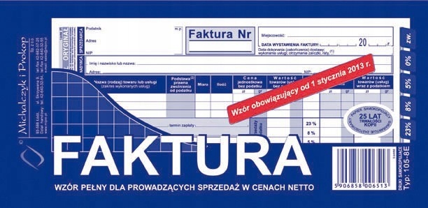Рахунок на продаж за чистими цінами Michalczyk та Prokop 1/3 A4, тип 105-8
