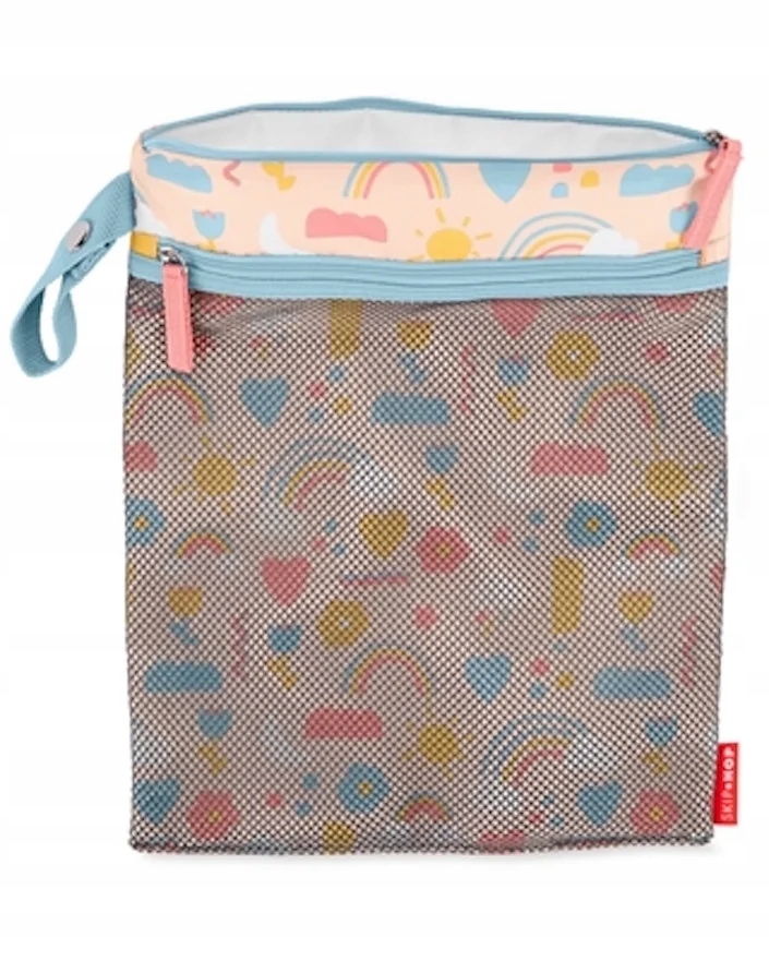 Стильна та функціональна сумка на мокрі речі у радісному візерунок веселки від відомого бренду Skip Hop. Ідеально підходить для дітей та батьків, які цінують практичні та естетичні рішення. Сумка ефективно зберігає мокрий одяг, рушники або аксесуари, захищаючи решту багажу від вологи.