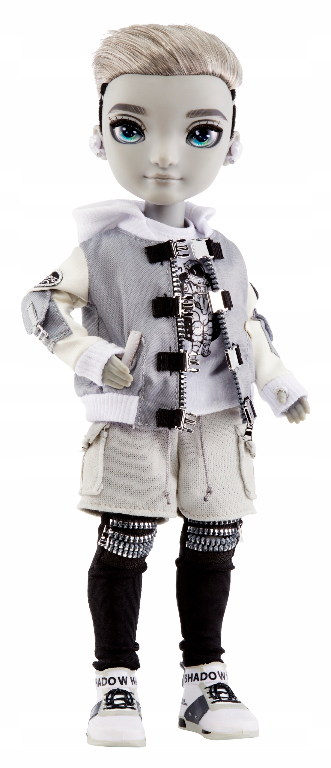 Еш Сільверстоун — це модна лялька-хлопчик у відтінках чорного та сірого.