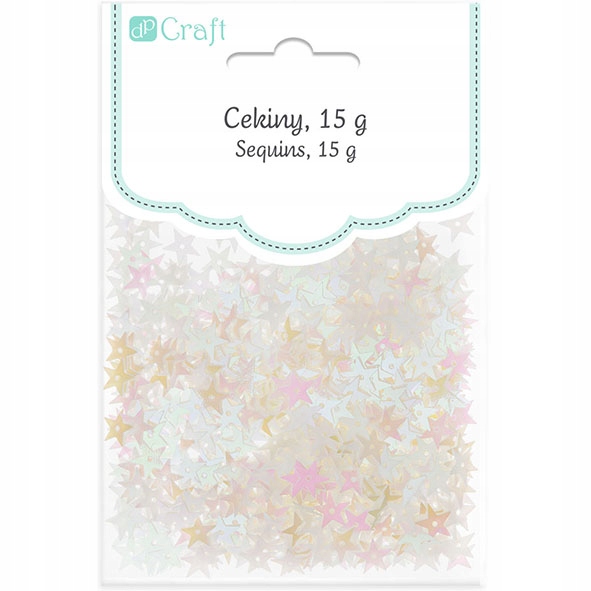 ПАЄТКИ Райдужні ЗІРКИ DPCE-038 DP CRAFT Блискітки-зірки обов'язково присутні в творчих роботах - вони чудово підійдуть як дитині, так і досвідченому майстру. Завдяки їм усі проекти засяють. Паєтки ідеально підходять для декорування таких проектів, як: вітальні листівки, коробки, декоративна подарункова упаковка та багато іншого. Їх можна як клеїти, так і пришивати, що дозволяє створювати унікальні аплікації на будь-який проект. В упаковці: 15г Кольори: райдужні Ціна за упаковку EAN: 5907590020294