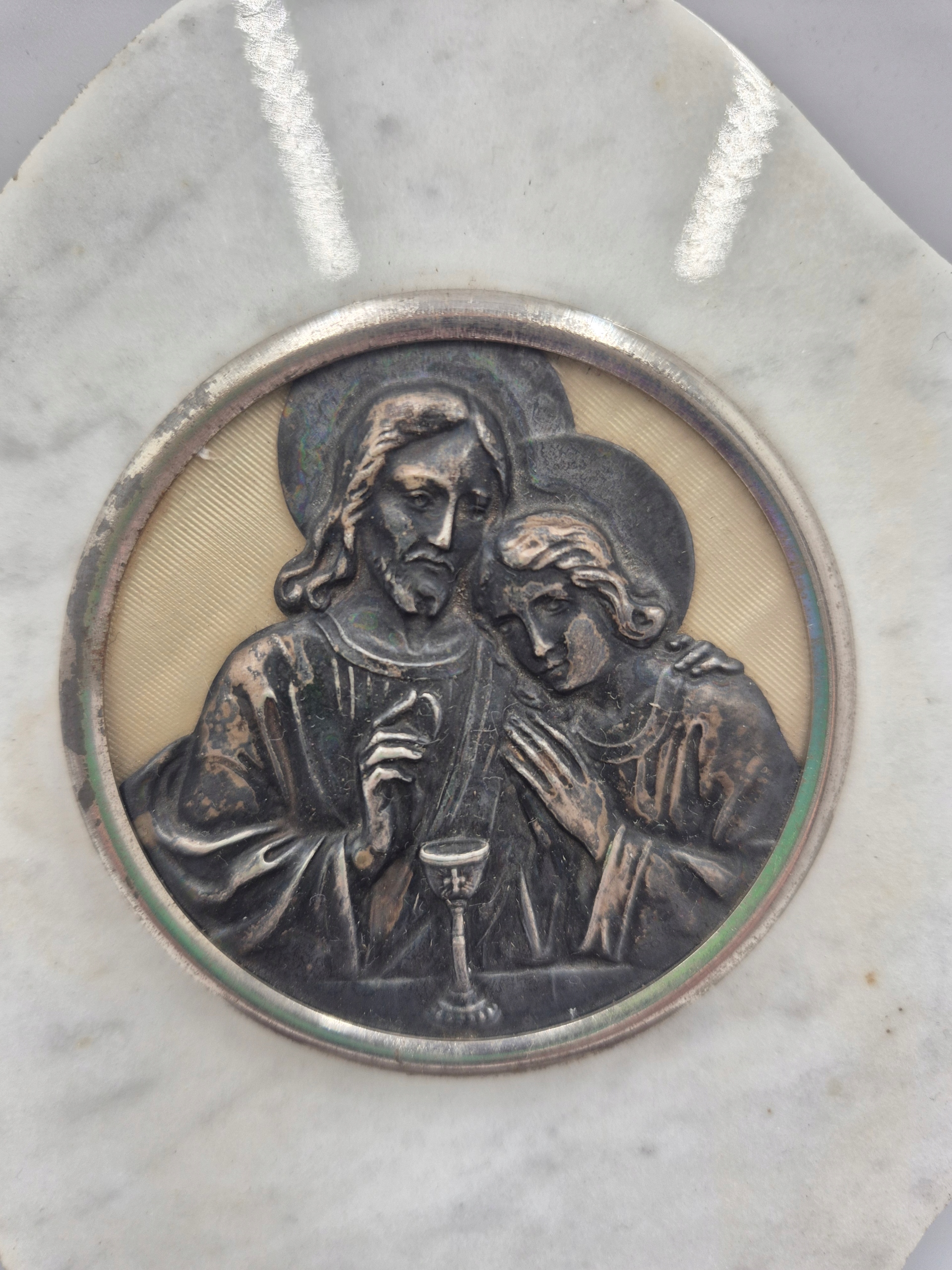 Район Ісуса табличка в оточенні дітей - Білий Онікс Франція Антик
