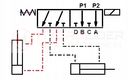 elektrozdór, використовуючи електричний імпульс (12В), дозволяє перемикати управління між двома незалежно працюючими циліндрами двосторонньої дії. Це ідеальне рішення, коли у нас є гідравлічний колектор, в якому вже використовуються всі наявні розділи, і раптом виникає потреба в контролі нового, додаткового приводу.