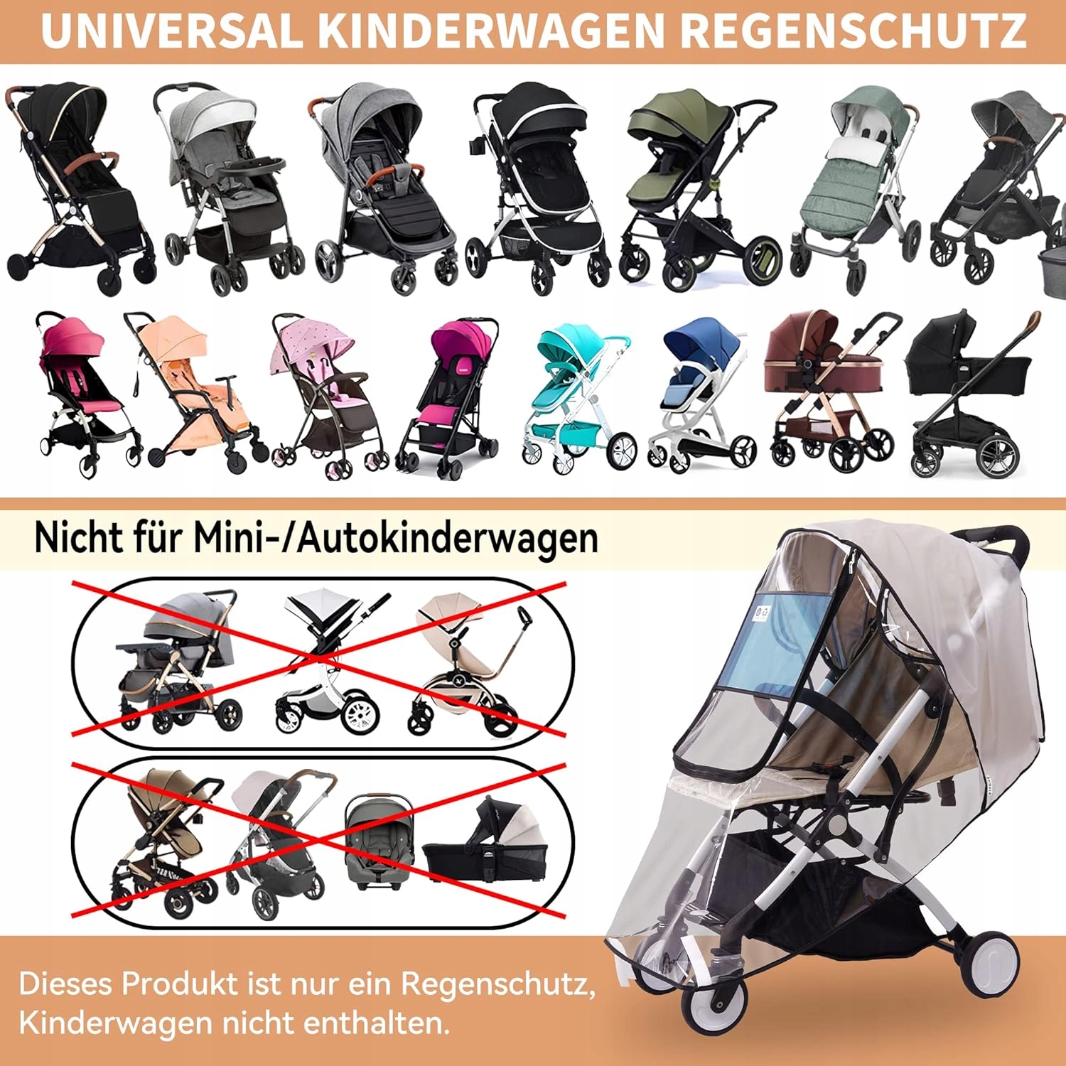 екологічно чистий: дощовий покрив виготовлений з тонкого шару EVA, він нетоксичний та екологічно чистий. Він має хорошу циркуляцію повітря, супер стійкість до холоду та дощу. Водонепроникна блискавка: водонепроникна блискавка запобігає дощу. На передній частині є закриття на липучках, щоб прикріпити дощову кришку в дитячій колясці, тому вам не доведеться турбуватися про вітер та дощ. Велике вікно: Захист від дощу коляска, прозорого великого вікна. Дуже практично, коли ви привозите дитину всередину і виїжджаєте, це забезпечує чудову видимість для дитини. Комплексний захист: Захист від дощу, універсальна дитяча коляска захищає від снігу, дощу, пилозахисного. Захистіть свою дитину від негоди. Універсальний розмір: Універсальний, комфортний дощовий покрив для більшості дитячих та дитячих ванн. Установка швидка і проста. Легко чистити.
