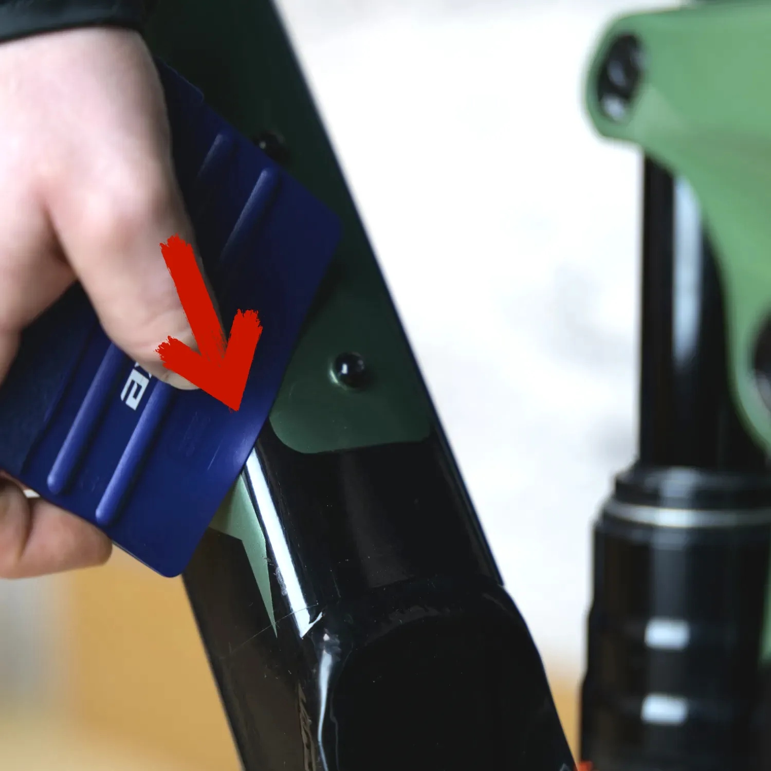 Ракель - незамінний помічник при нанесенні захисних плівок. Він дозволяє позбутися бульбашок повітря, які утворюються між плівкою та рамою велосипеда. Полегшує та пришвидшує закріплення велосипеда.