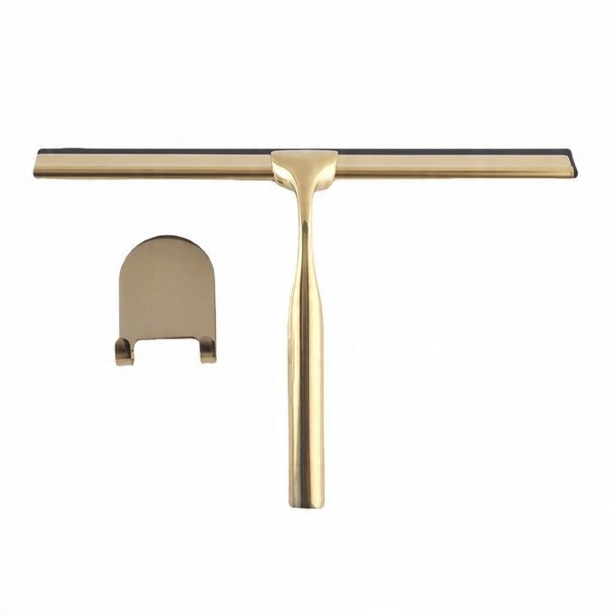 Універсальний ракель для душових кабін золотого кольору - gold, це корисний інструмент, який дозволить нам швидко і ефективно видалити воду і пару з душових кабін, дзеркал і плитки. Ракель виготовлений з нержавіючої сталі та має практичну підвіску, завдяки якій він завжди під рукою.
