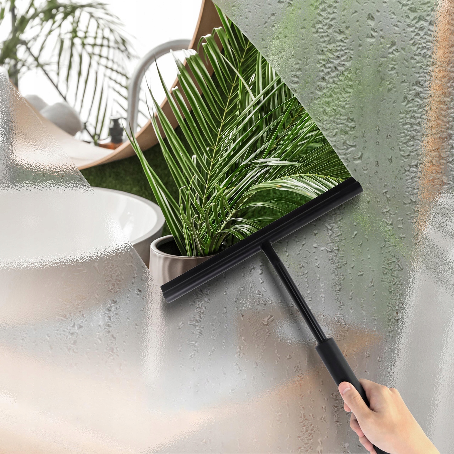Ракель силіконовий для вікон, скла та дзеркал з ручкою, чорний, loft Shower