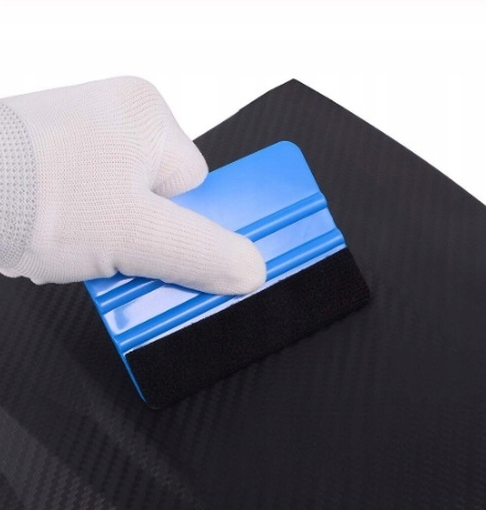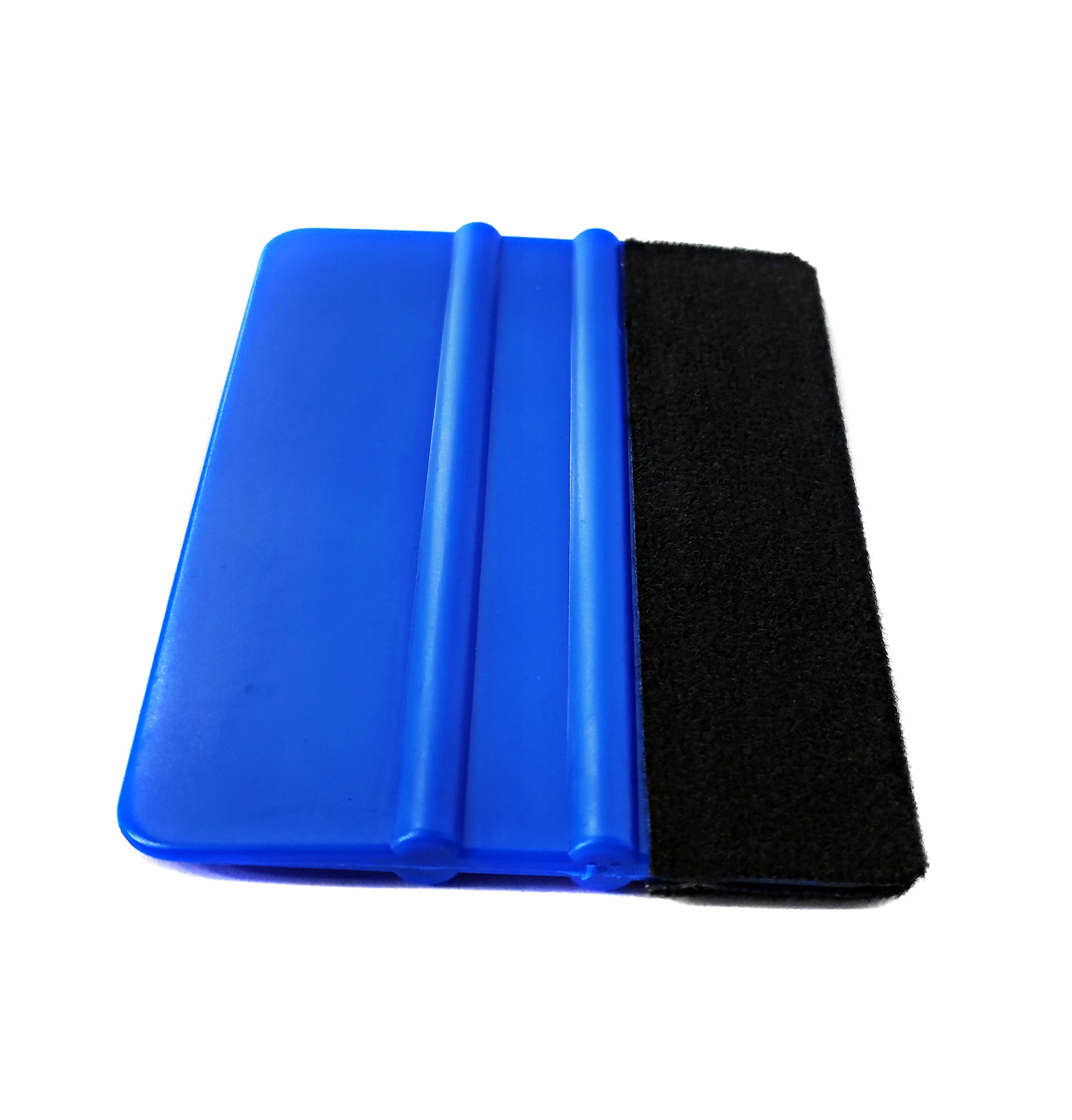 Використовуйте ракель, щоб вичавити зайву воду під час нанесення. Ракель має мікрофібровий фетр, який запобігає дряпанню фольги, розгладжуючи як кольорову, так і так звану срібну фольгу. одностороннє дзеркало. Блакитний ракель дуже м’який, призначений для опуклих поверхонь і обклеювання автомобіля. Синій ракель.