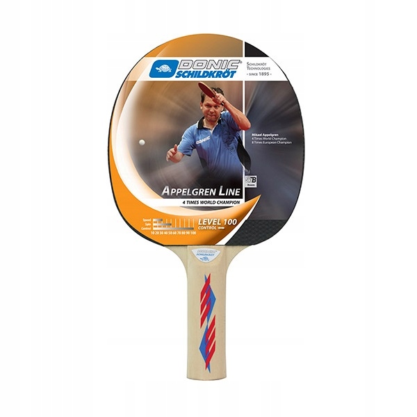 Ракетка для настільного тенісу DONIC Appelgren 100 з колекції ракеток, названої на честь одного з найвідоміших чемпіонів світу Мікаеля Аппельгрена. Це базова ракетка для невибагливих ігор-хобі.