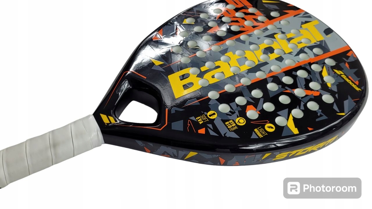 Ракетка Babolat, призначена для гри в падель. Ракета відрізняється насамперед дуже хорошою маневреністю, завдяки малій вазі. Це полегшить використання на майданчику та швидше навчиться. Babolat Storm є синонімом універсальності. Ракетка забезпечує потужність і контроль. Завдяки формі краплі ви можете розраховувати на велику універсальність. Крім того, м’які матеріали, використані в ракетці, підвищують комфорт гри.
