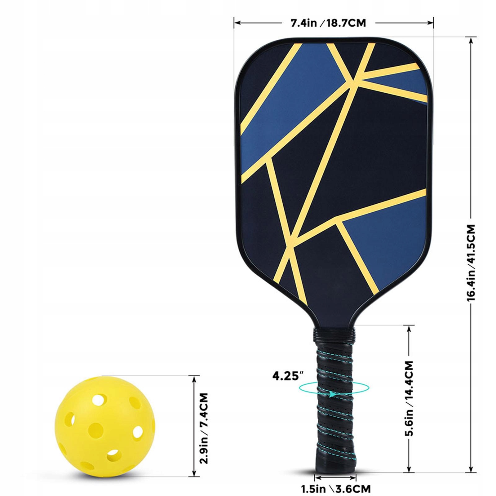 [Правильний розмір] Розміри ракеток Pickleball — 41,5 см x 18,7 см / 16,34 x 7,36 дюйма, а діаметр м’яча — 7,4 см / 2,91 дюйма.