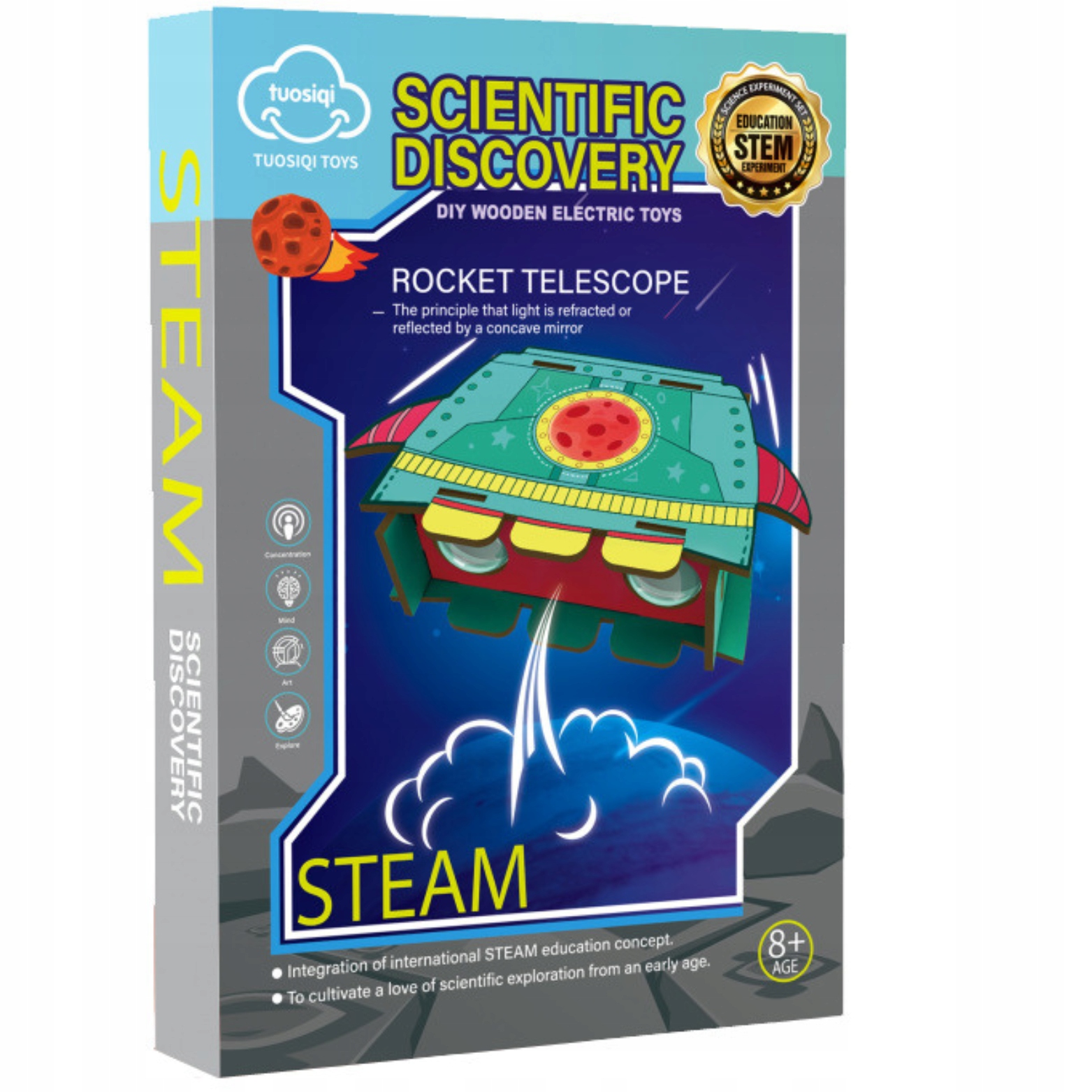 Навчання через гру: набір поєднує розваги з освітою, навчанням основам природи та астрономії. Діти можуть спостерігати космос за допомогою ракетного телескопа.
