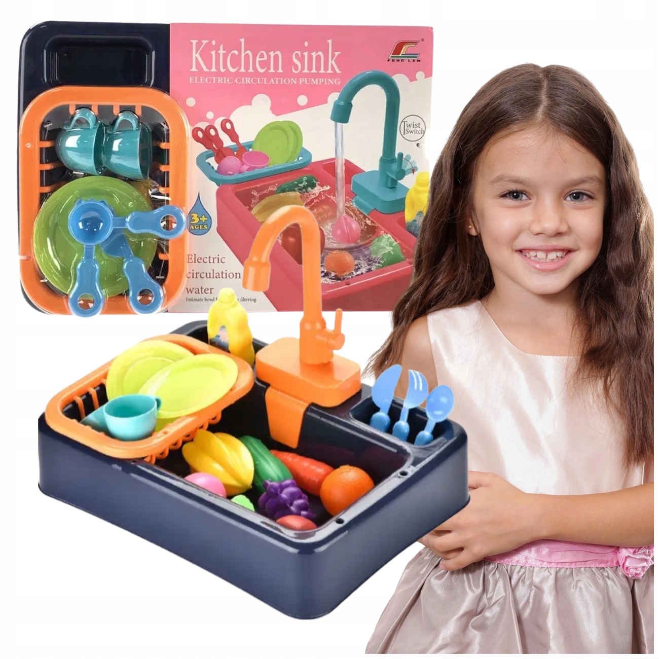 ✓ Вміст набору: Раковина з краном і насосом, посуд, столові прибори, аксесуари для миття посуду