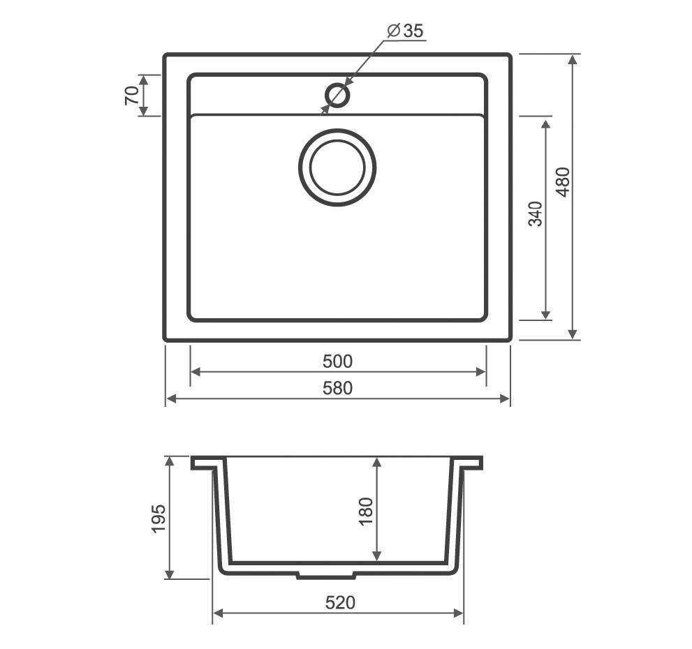 ГРАНІТНА МИЙКА, ОДИНАРНА ЧАША, БІЛА МИЙКА