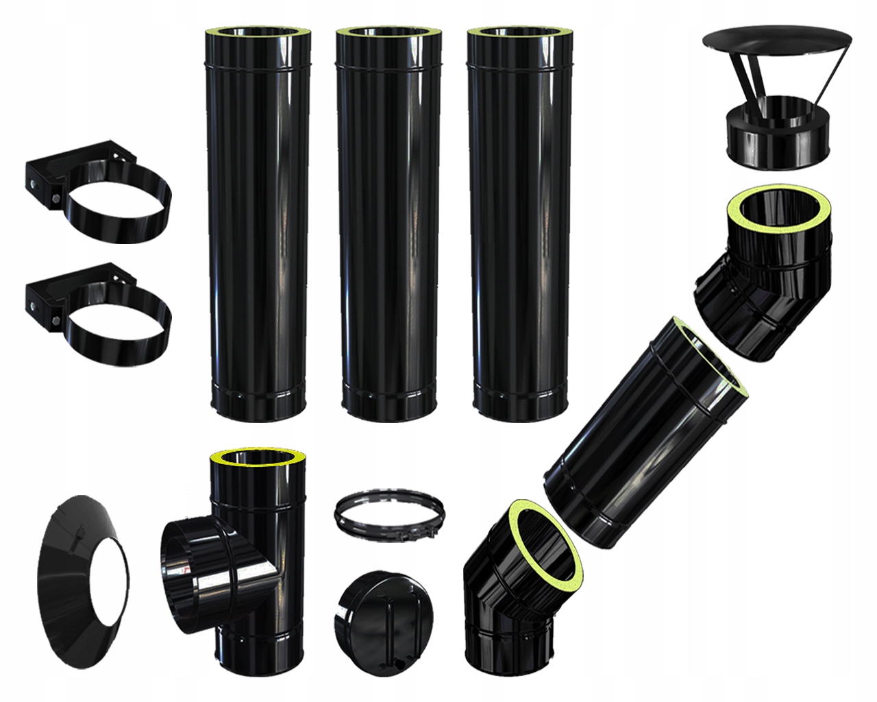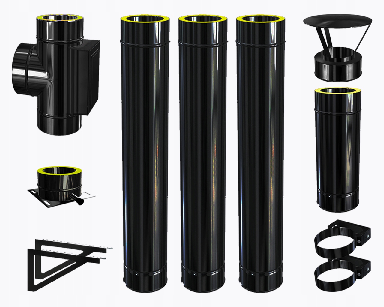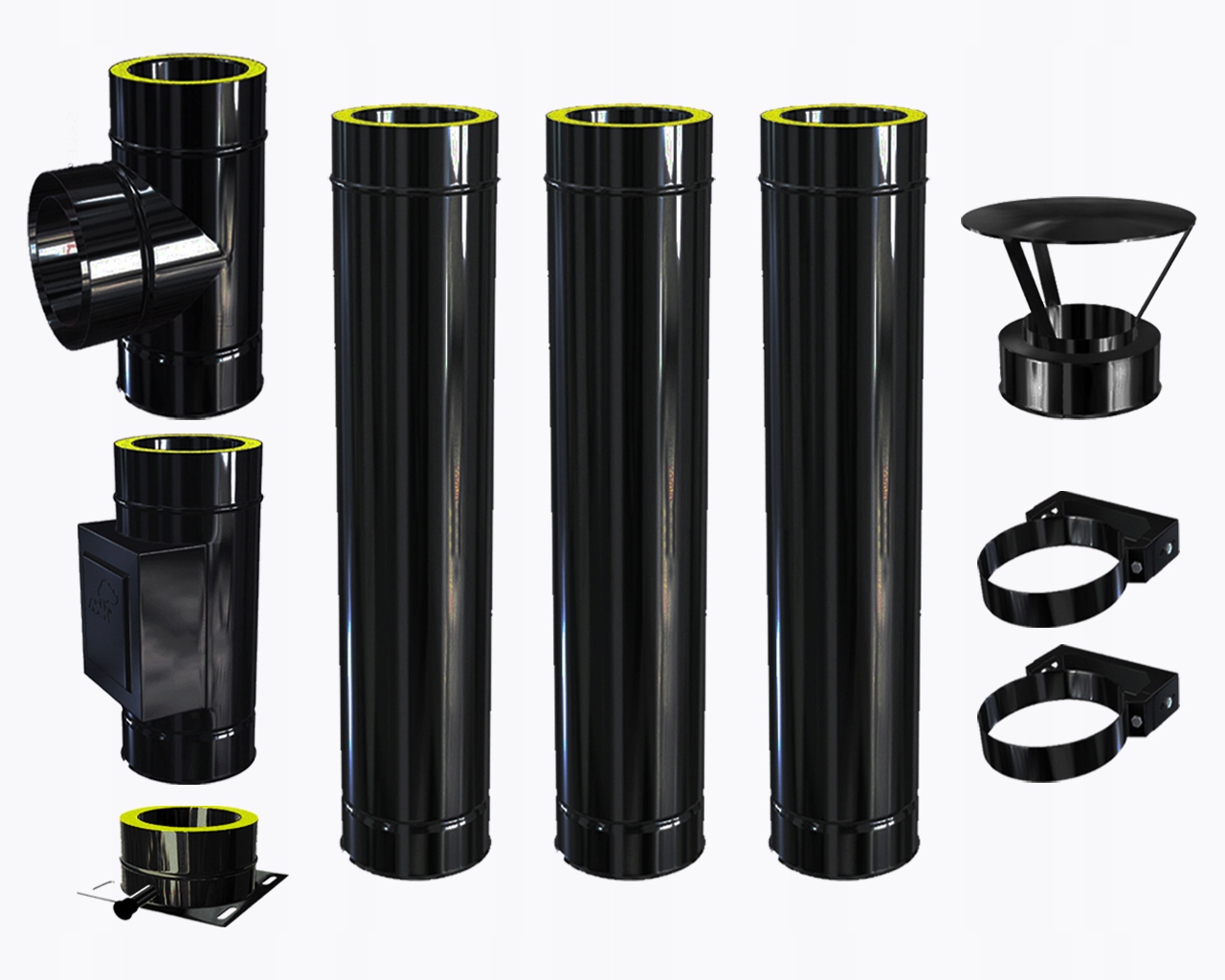 RAL 9005 ПОФАРБОВАНИЙ У ЧОРНИЙ ІЗОЛЬОВАНИЙ ДИМОХОД ДЛЯ КАМІНУ GOAT DEFRO ПЕЛЕТНІ ПЕЧІ