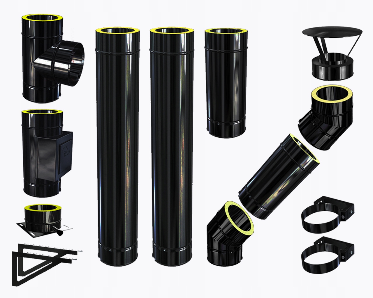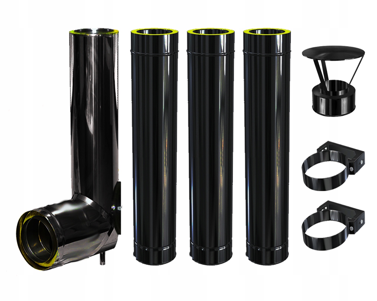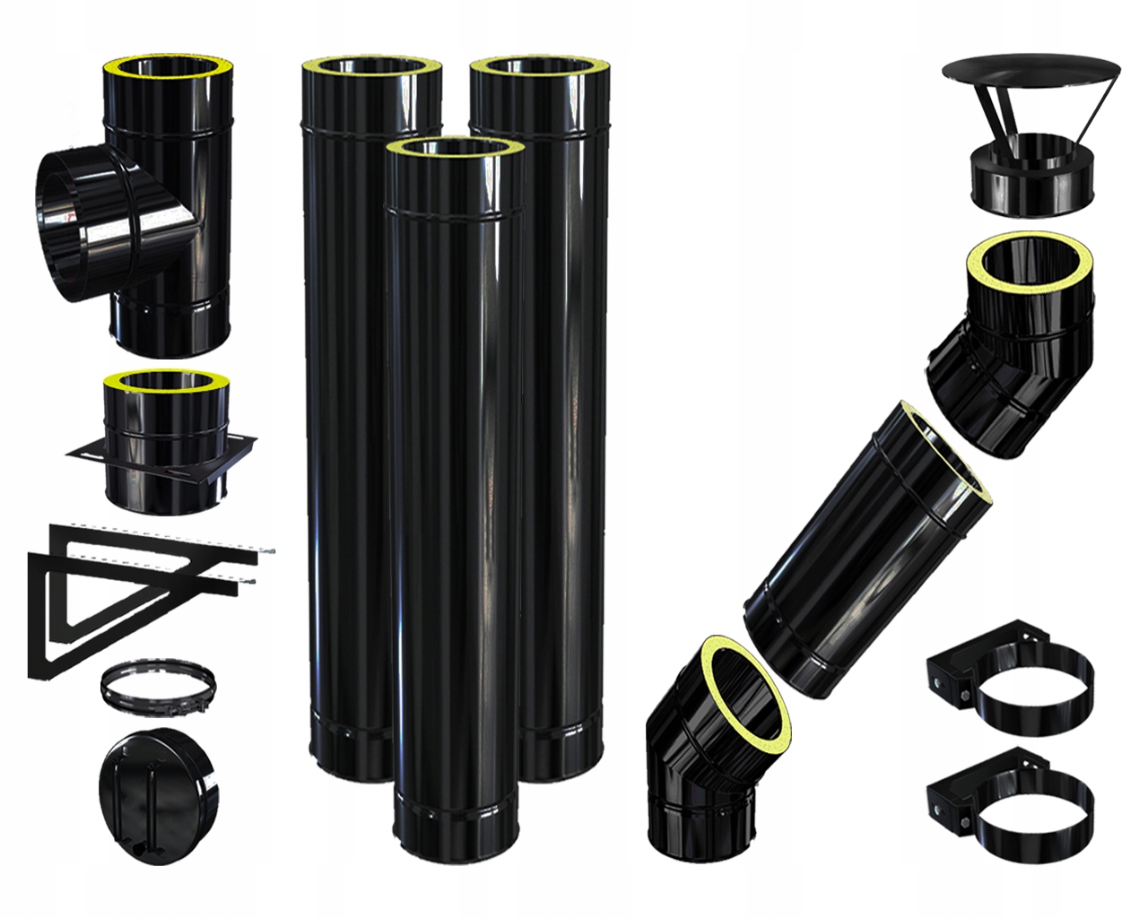 RAL 9005 ПОФАРБОВАНИЙ У ЧОРНИЙ ІЗОЛЬОВАНИЙ ДИМОХОД ДЛЯ КАМІНУ GOAT DEFRO ПЕЛЕТНІ ПЕЧІ