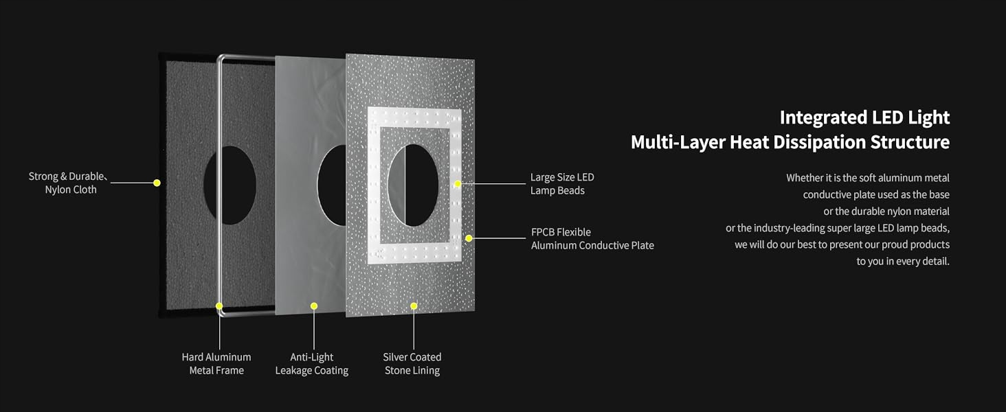 Ручка дозволяє встановлювати ручний діапазон від 0% до 100%, створюючи багатовимірний світловий ефект. Інформація про те, чи вимагають дисплеї більш світловідбиваючий або яскравіший загальний вигляд, світловий намет, який можна використовувати в типовому результаті.