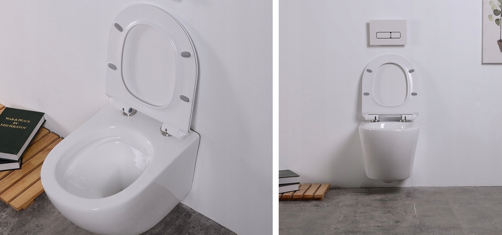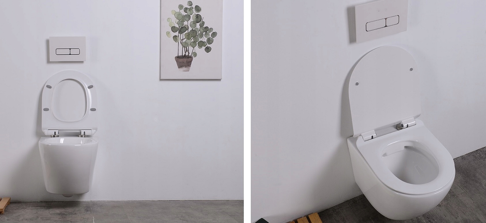 Унітаз має повільно закривається сидіння з металевими петлями, що робить його дуже міцним. Чаша призначена для монтажу на каркасі, що монтується врівень. Виготовлена з високоякісної сантехнічної кераміки. Завдяки спеціальній фазі виробництва він міцний і його легко чистити.