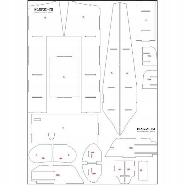 Вирізані лазером елементи моделі, які в оригінальному вирізі потребують склеювання відповідної товщини картону. Ці елементи точно вирізаються лазерним плотером відразу в картоні відповідної товщини і вимагають лише виштовхування з аркуша пальцем (вони з'єднані лише маленькими з'єднувачами).