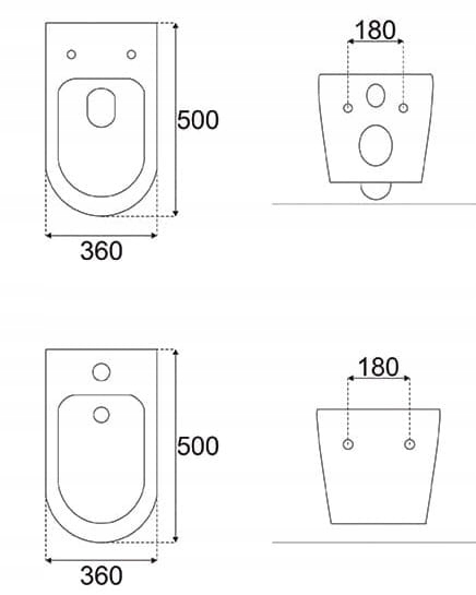 Рамка підходить до всіх чаш біде з відстанню кріпильних гвинтів 180 мм та 230 мм.