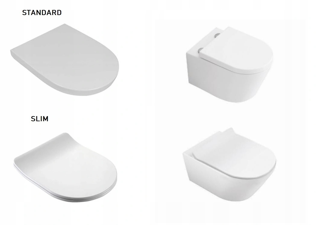 - Тонке сидіння з дюропласту, що повільно закривається, з металевими петлями з функцією швидкого звільнення