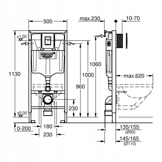 РАМА GROHE + КНОПКА + ЧАСА З ІДЕАЛЬНИМ СИДІЛОМ + КРИЛОК
