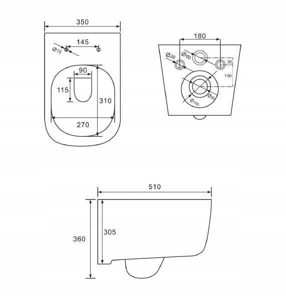 - Для підвісної чаші з інтервалом отвори 18 см або 23 см