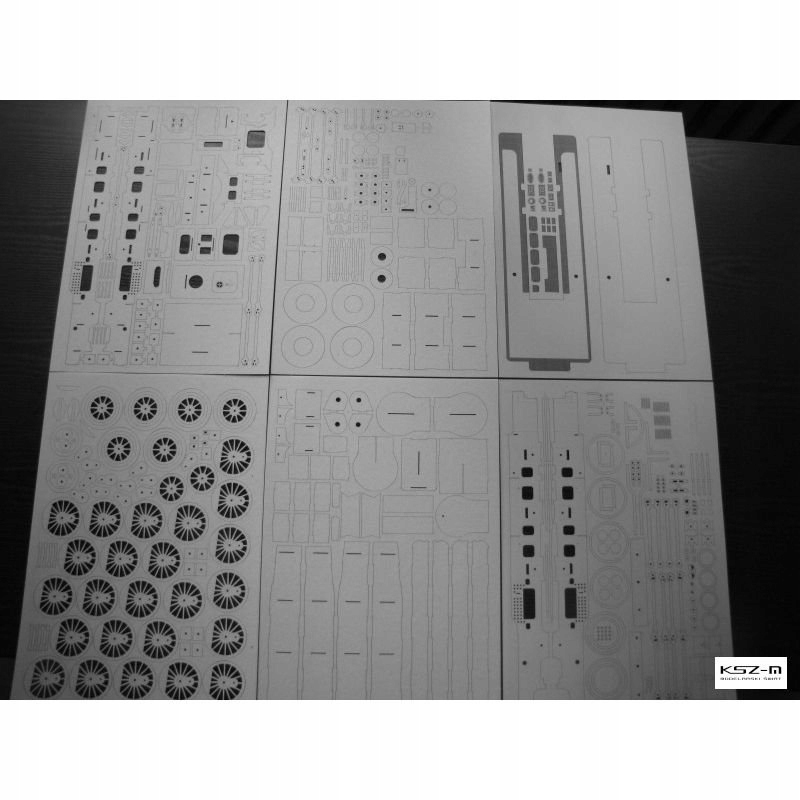 Вирізані лазером елементи моделі, які в оригінальному вирізі потребують склеювання відповідної товщини картону. Ці елементи точно вирізаються лазерним плотером відразу в картоні відповідної товщини і вимагають лише виштовхування з аркуша пальцем (вони з'єднані лише маленькими з'єднувачами).