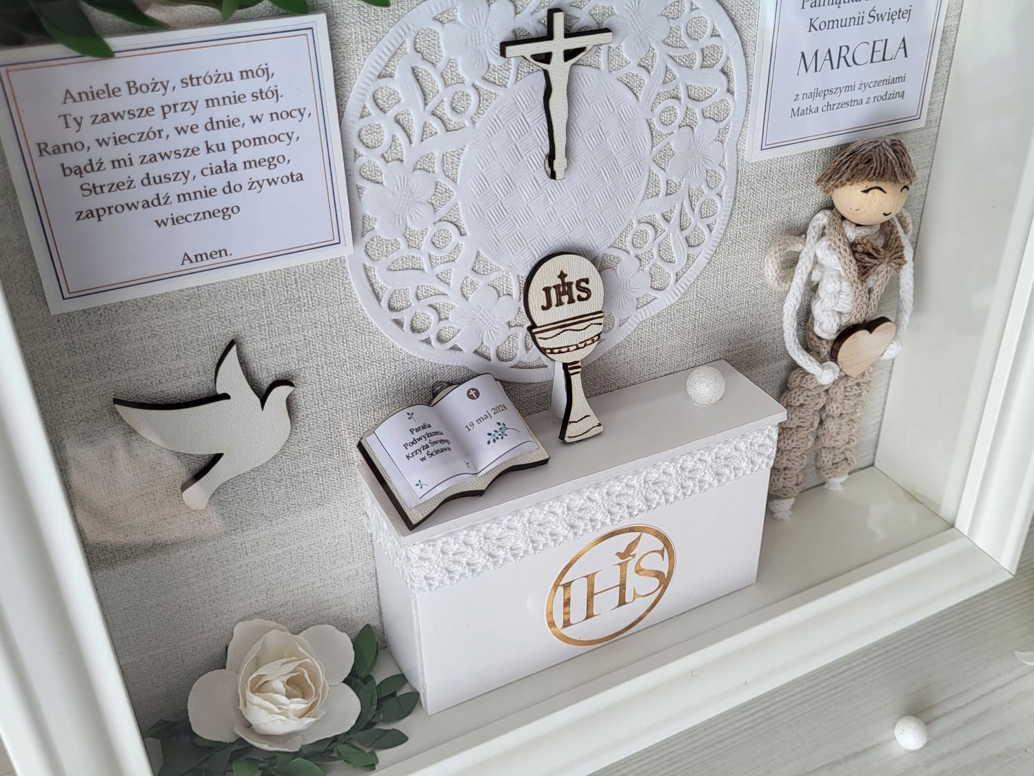 Рамка 3D Причастя Ангел Макрам Макрам сувенір першого Святого Причастя.