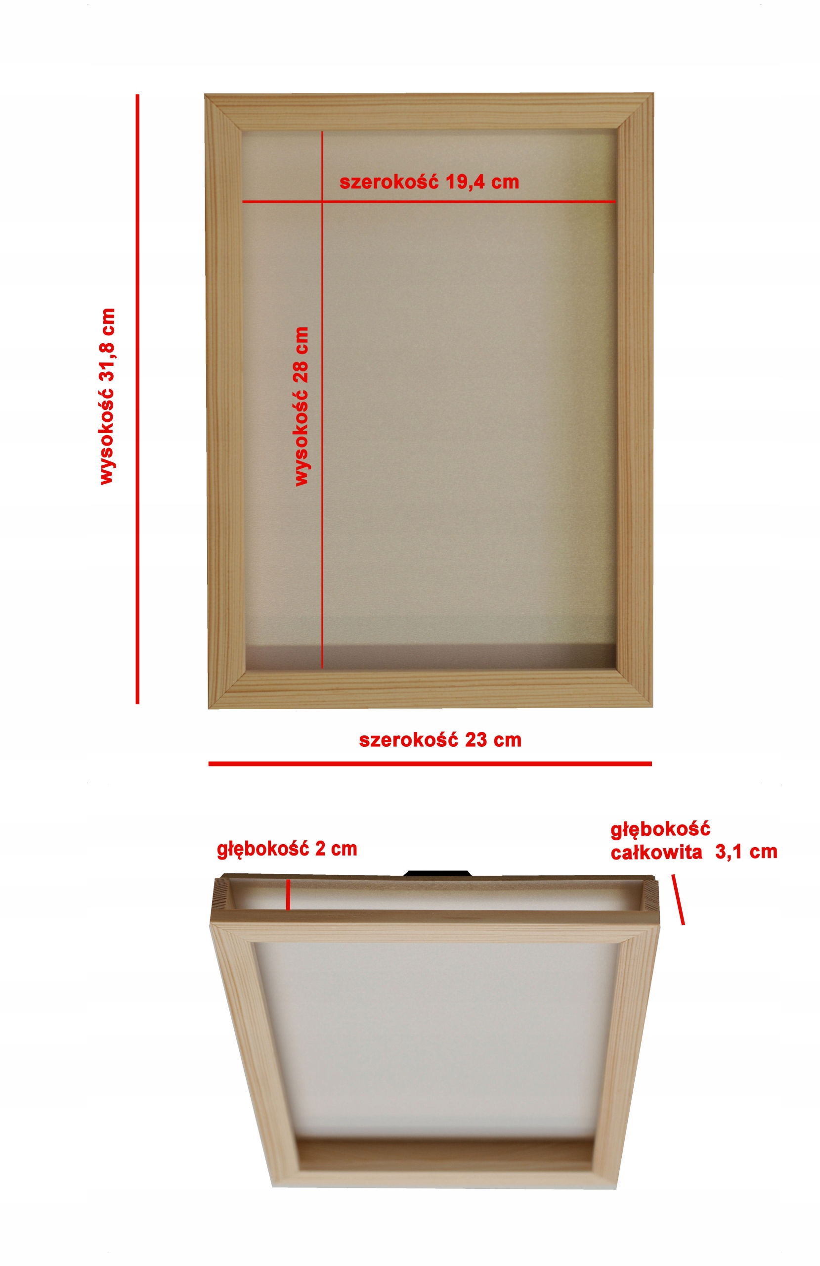 - Зовнішні розміри рами висота 32 см, ширина 23 см, загальна глибина 3,1 см