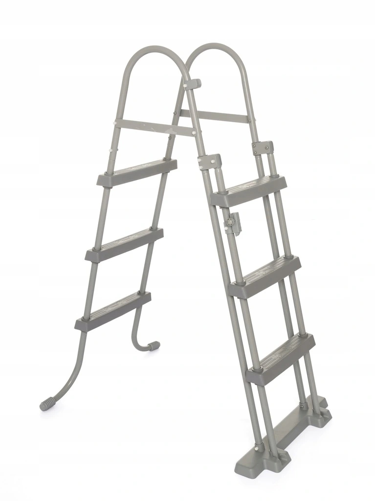 Двостороння драбина повністю виготовлена з високоміцного металу, стійкого до різних погодних умов і води, в тому числі хлорованої.