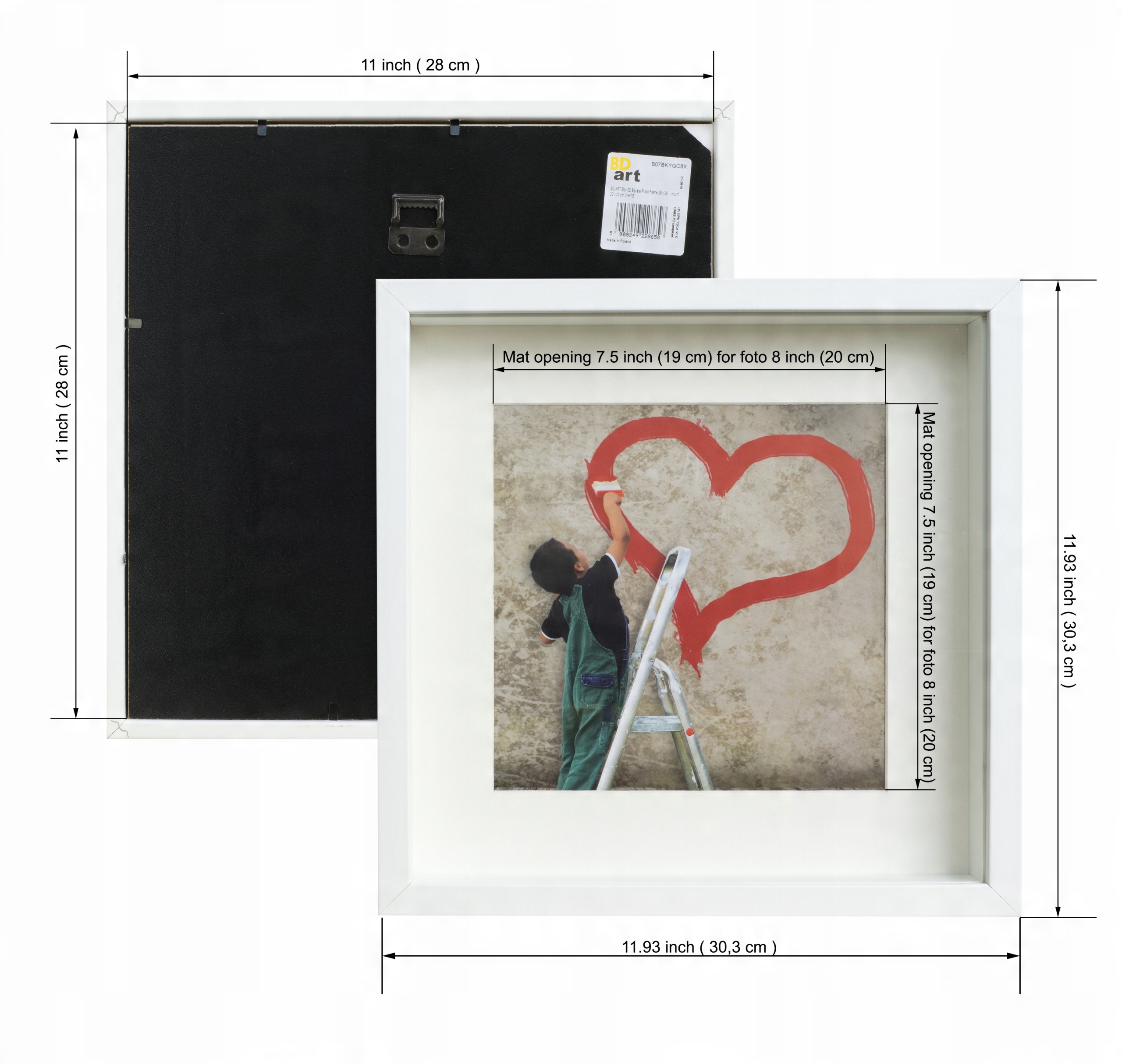 3D фоторамка deep shadow box 28x28 см квадратна біла для креативного відображення фотографій і сувенірів з подорожі, весілля чи улюблених прикрас.