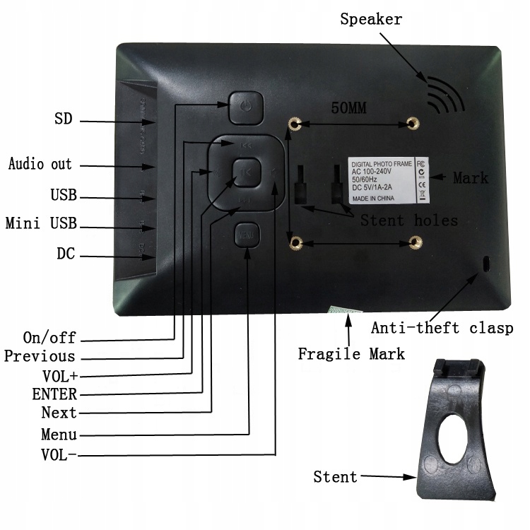 Сучасна рамка в сучасному корпусі дозволить комфортно переглядати фотографії прямо з SD-карти або флешки на 7-дюймовому екрані, а також є чудовим декоративним елементом як у вітальні, так і в спальні, а також на стіні, комоді, полиці чи полиці. Він також чудово працює як портативний пристрій для презентацій.
