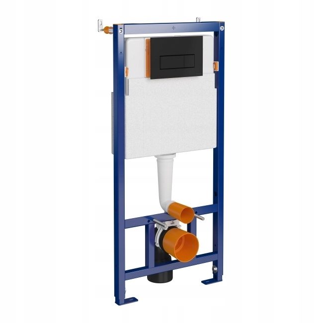 Рамка REMO для прихованого монтажу з кнопкою. Набір складається з механічної рами, яка гарантує тривале і безпроблемне використання, і чорної матової кнопки змиву. Рама з технологією механічного змиву має зливне коліно з регулюванням глибини та універсальну систему настінного кріплення. Додатково рама має поворотні ніжки з 2 положеннями (всередину і назад). Іншими перевагами рами є можливість підключення води до бачка в 2 точках зліва і зверху, а також установка кнопки змиву спереду. Рамка оснащена системою Fresh, що дозволяє наносити акварельну таблетку. Модель розрахована на економічний змив 3/5.