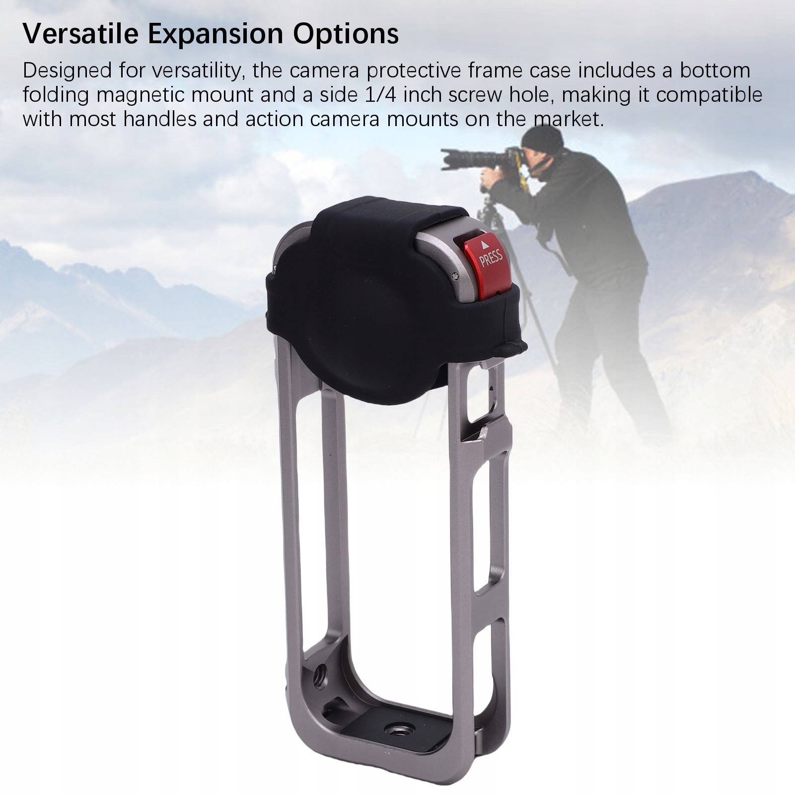 3. Універсальні варіанти розширення: Розроблений для універсальності, корпус камери містить нижню складну магнітну кріплення та сторону 1/4 дюйма відкриття гвинта, завдяки якому він сумісний з більшістю ручок та вкладенням камери на ринку.