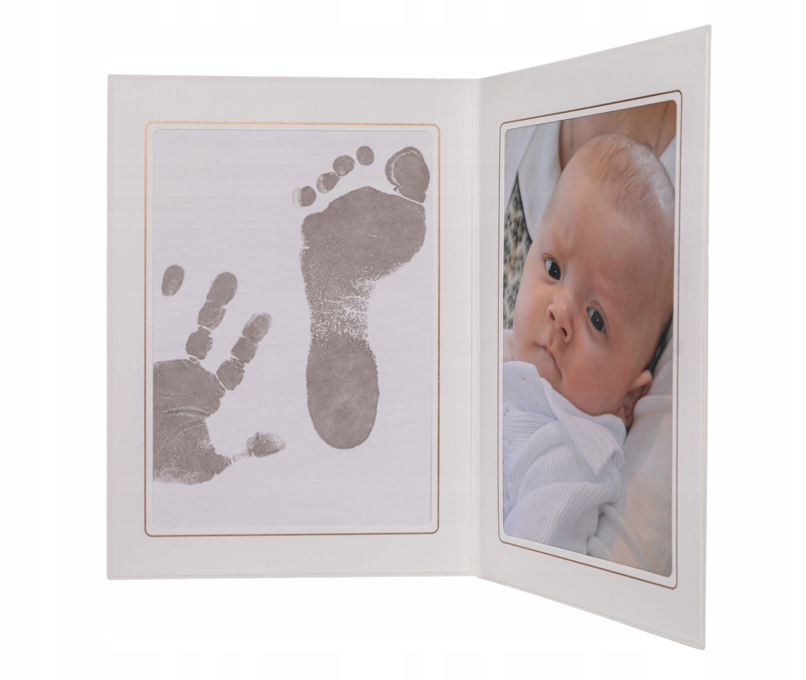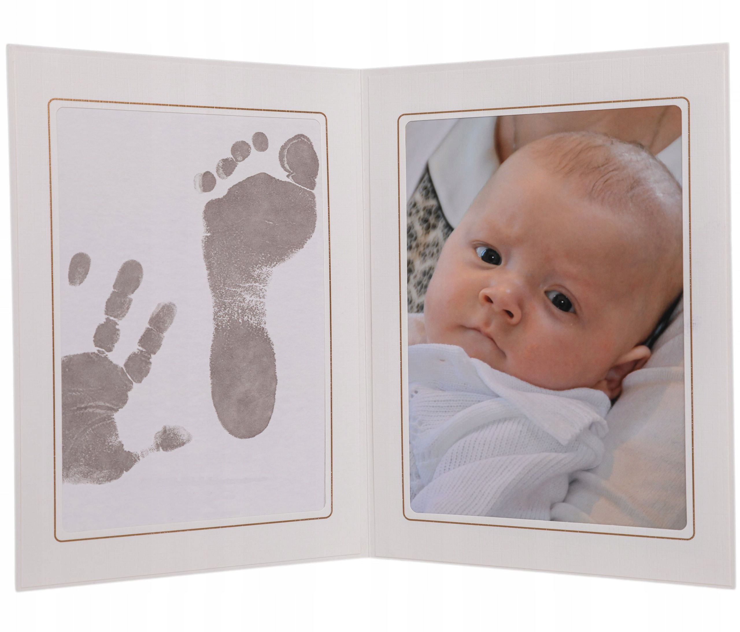 Фоторамка, в яку ми можемо вмістити фотографію нашої дитини у форматі 13 х 18 та ідеальні відбитки рук/ніжок. Місце для друку також має формат 13 х 18, тож поміститься як нога, так і рука Дитини.
