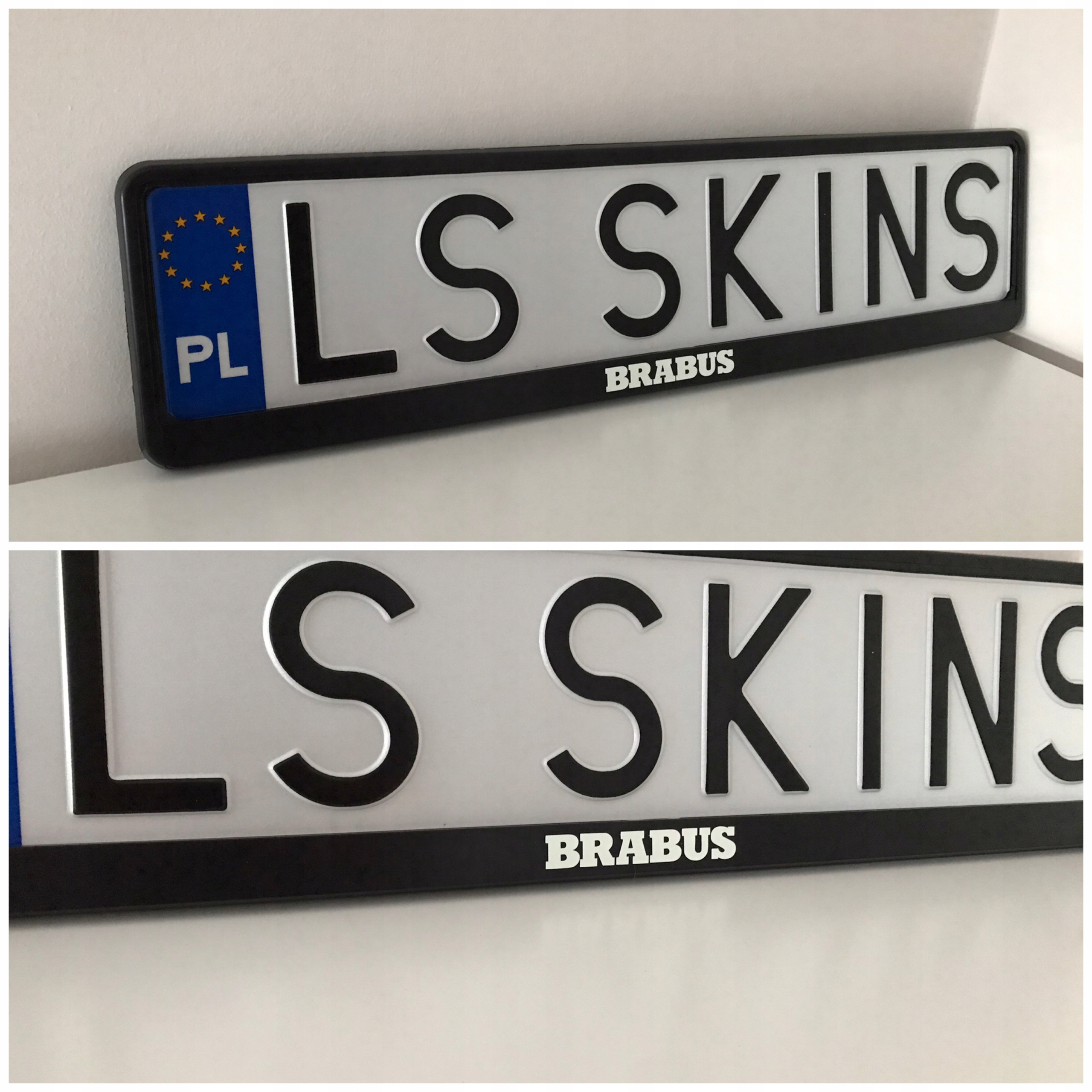 На аукціоні продається чорна рамка для номерного знака ЄС із написом Brabus у різних кольорах.