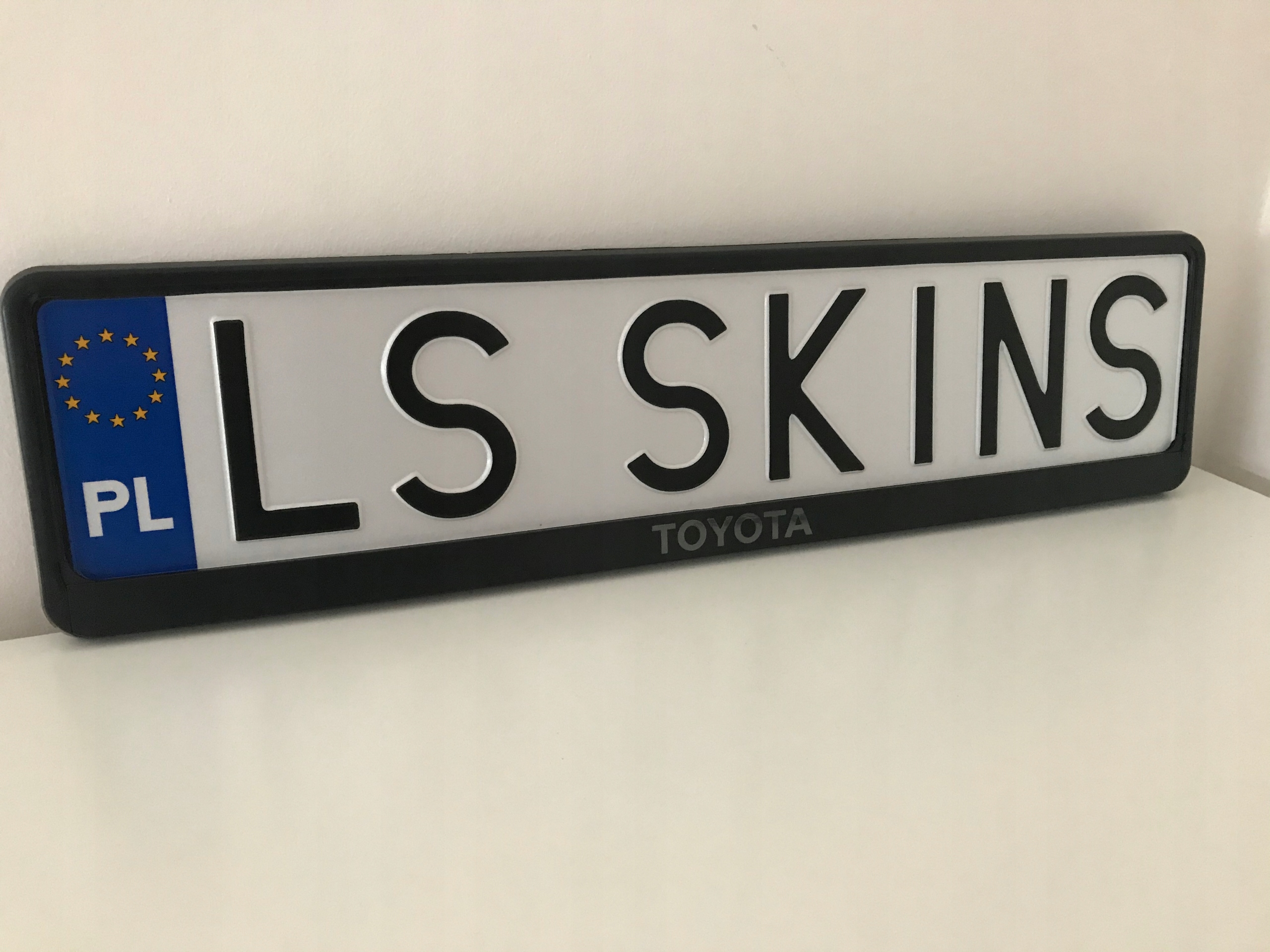 На аукціоні продається чорна рамка для номерного знака ЄС з написом Toyota у різних кольорах.