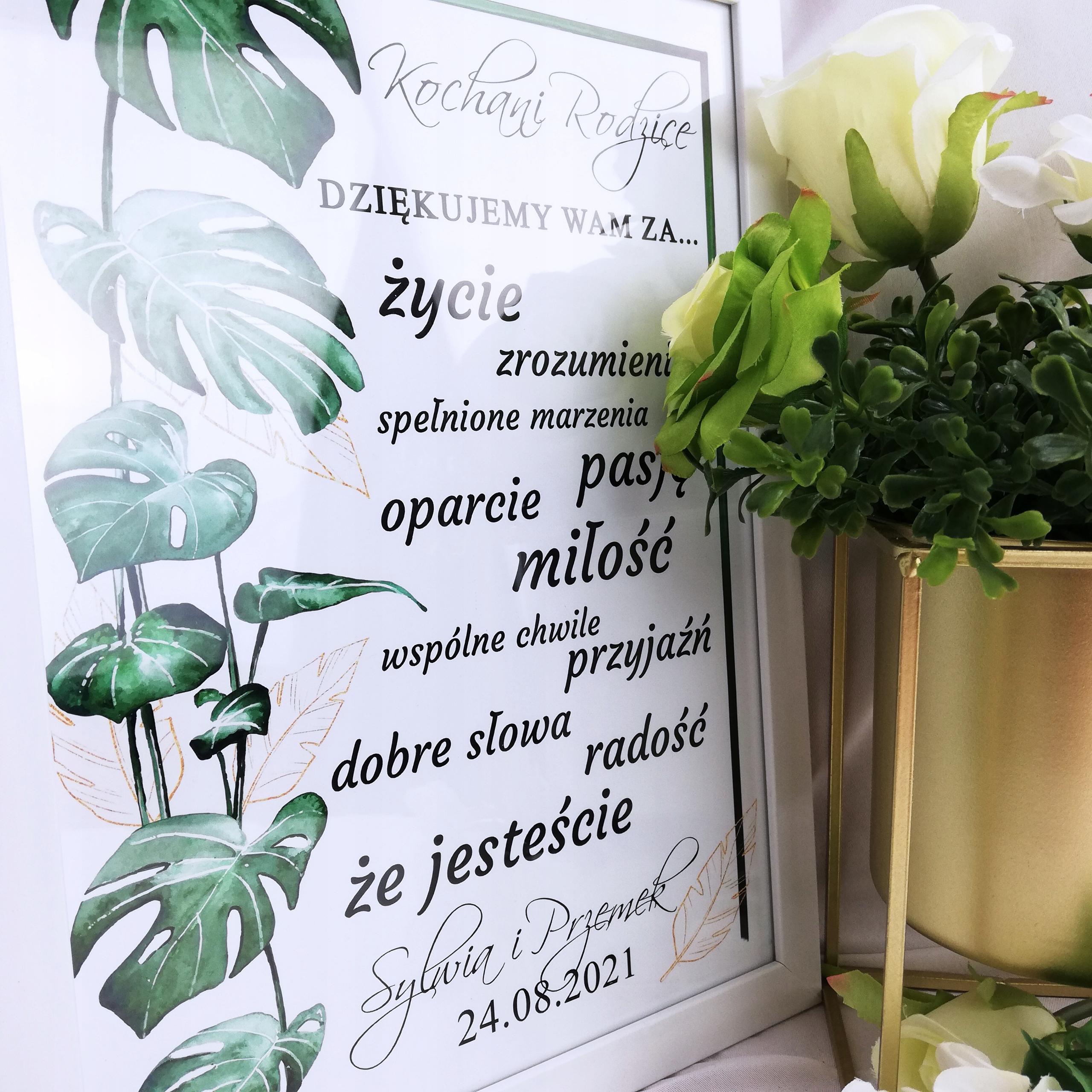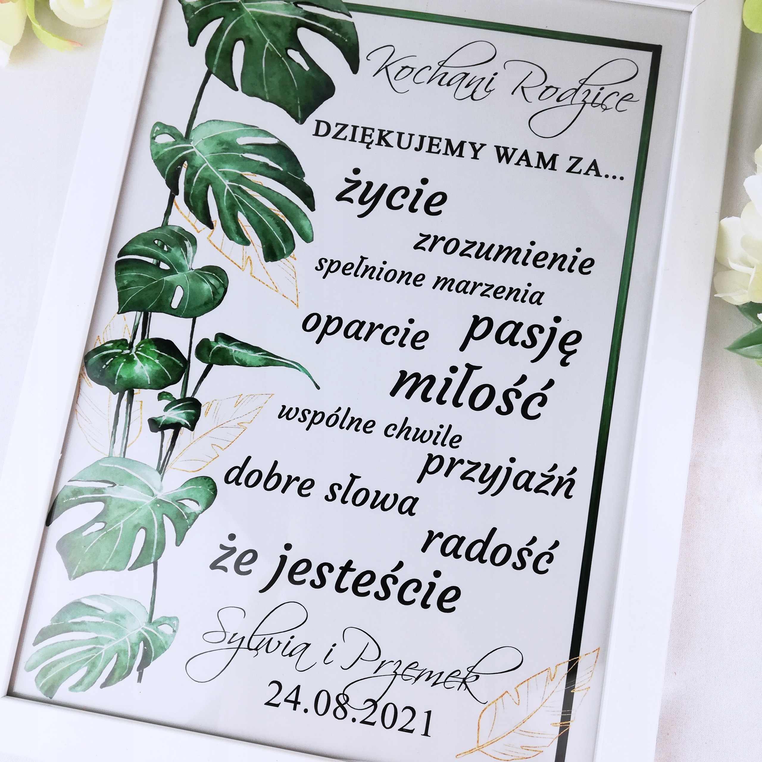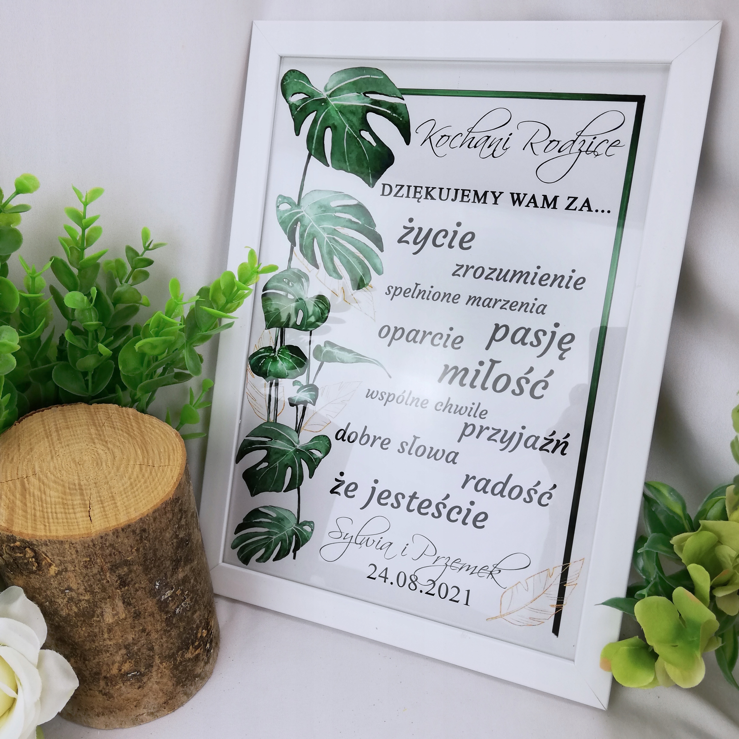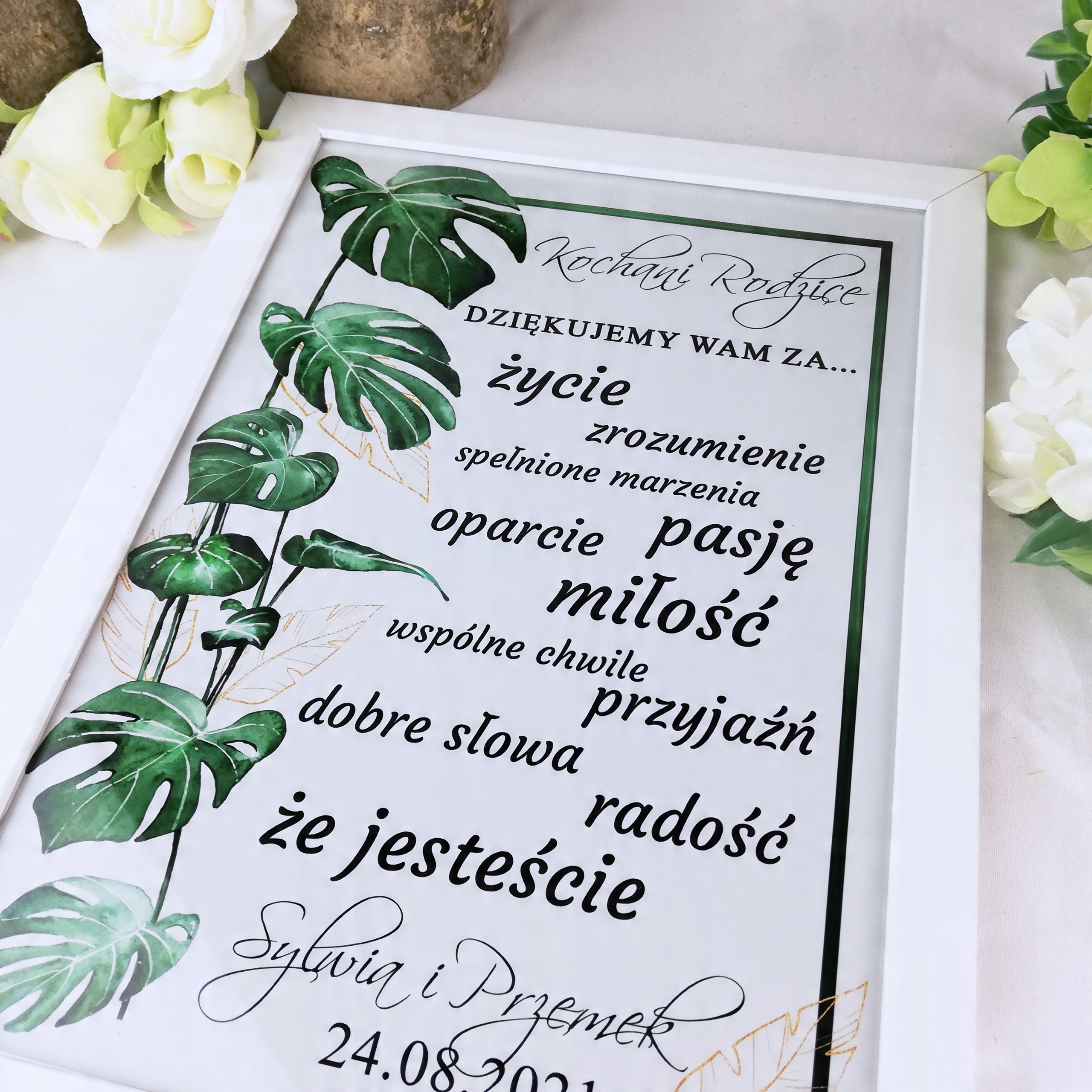 ПЕРСОНАЛІЗОВАНА РАМА ДЯКИ ДЛЯ БАТЬКІВ З МОДНИМ МОТИВОМ ЕЛЕГАНТНОГО МОНСТРИЧНОГО листя