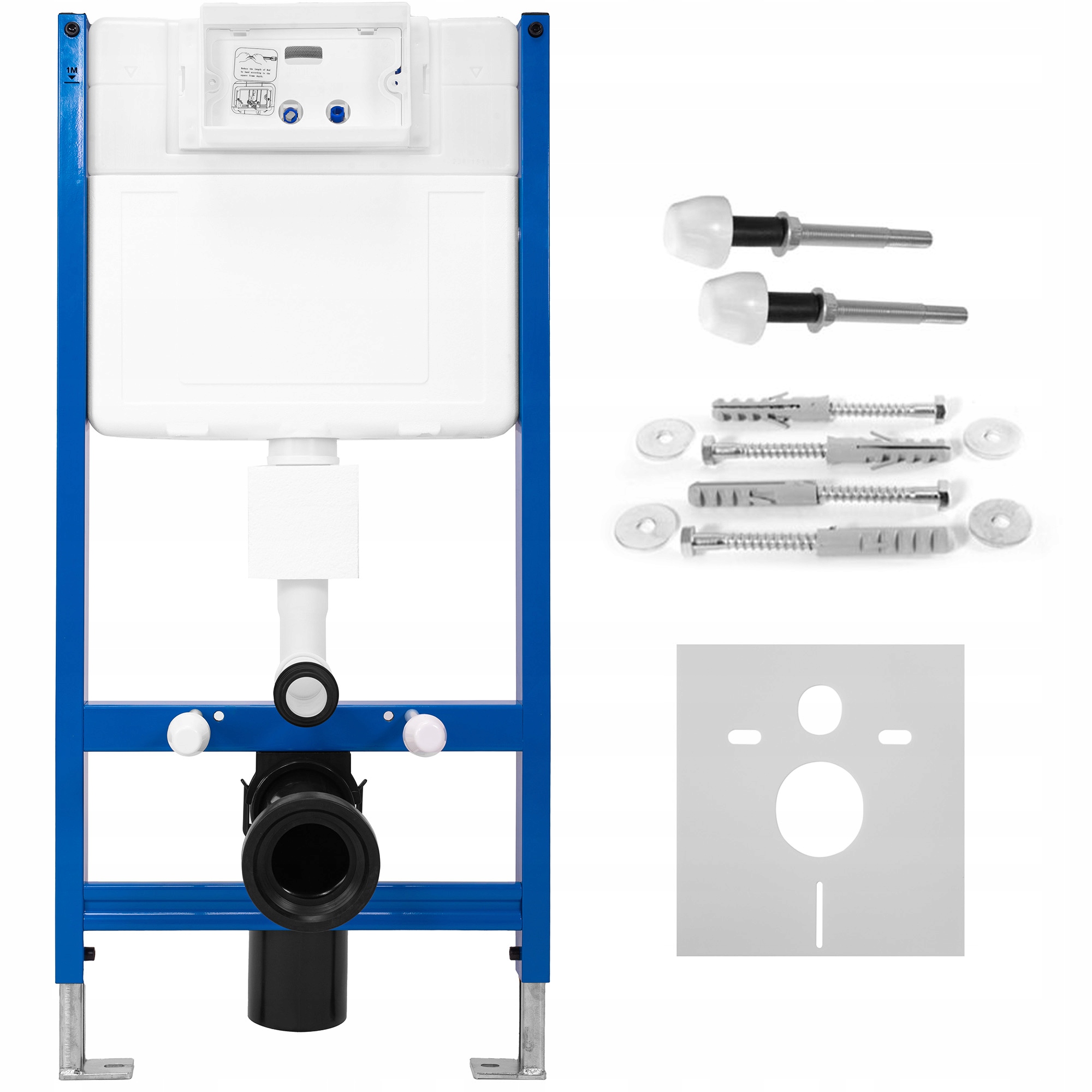 У комплект входять дюбеля з шурупами для кріплення рами до стіни та підлоги, а також шурупи для підвішування унітазу.