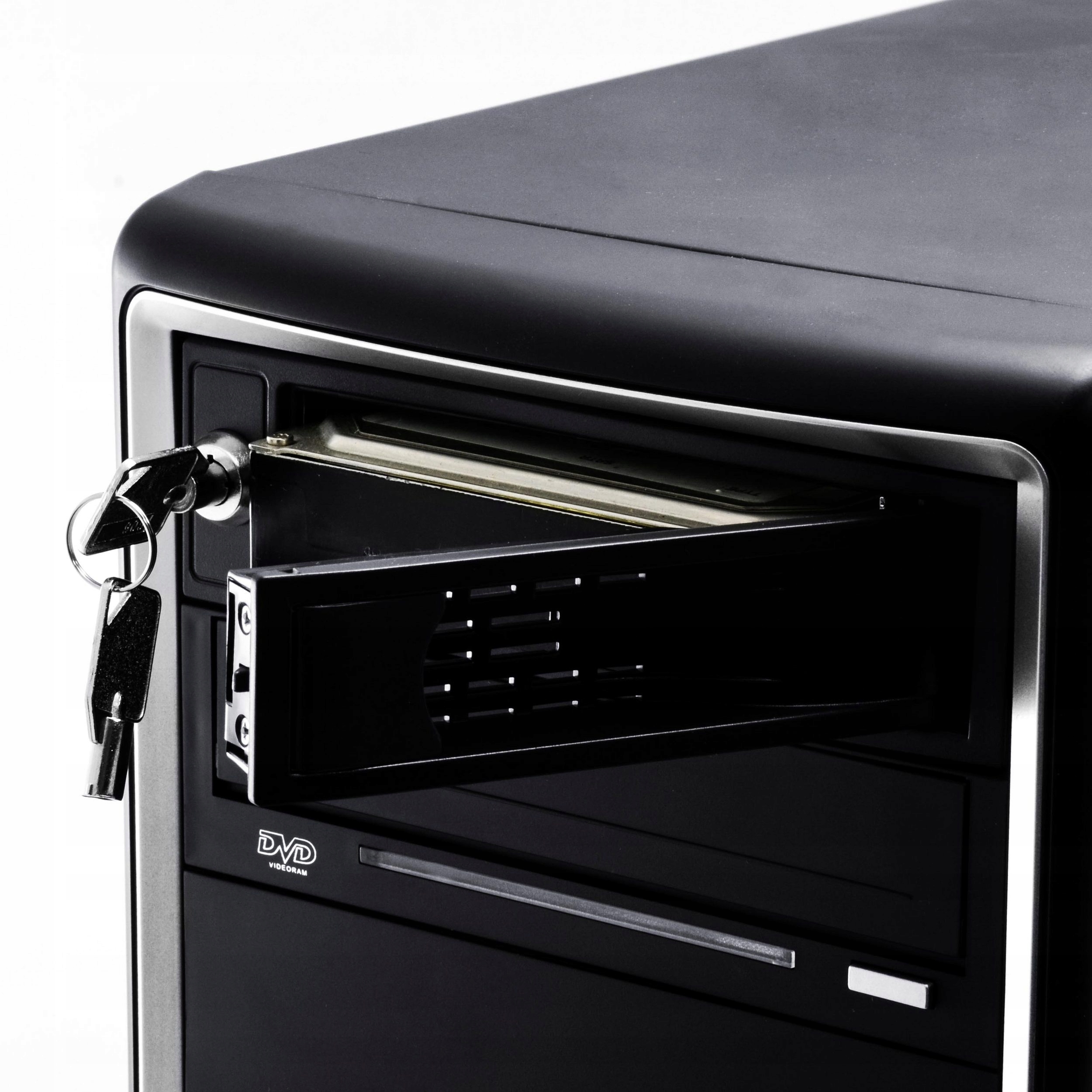 Особливо під час роботи з конфіденційними даними, знімна рамка пропонує чудову можливість легко вийняти використовуваний жорсткий диск і зберігати його в безпечному місці. Це дає вамнайкращий захист від можливого доступу третіх сторін. У комплект поставки входять два ключа для передньої панелі та необхідні кріпильні гвинти.