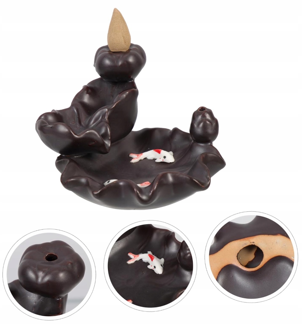 ароматами з зворотним потоком (зворотний потік) були спеціально розроблені так, що дим з пахоща тече вниз по каскаду, в контейнер внизу каміна. Зворотний потік, покладіть їх на камін на аромат, і дим, який важчий за повітря, починає бігати по звивистих канавках, створюючи дивовижний ефект для очей.