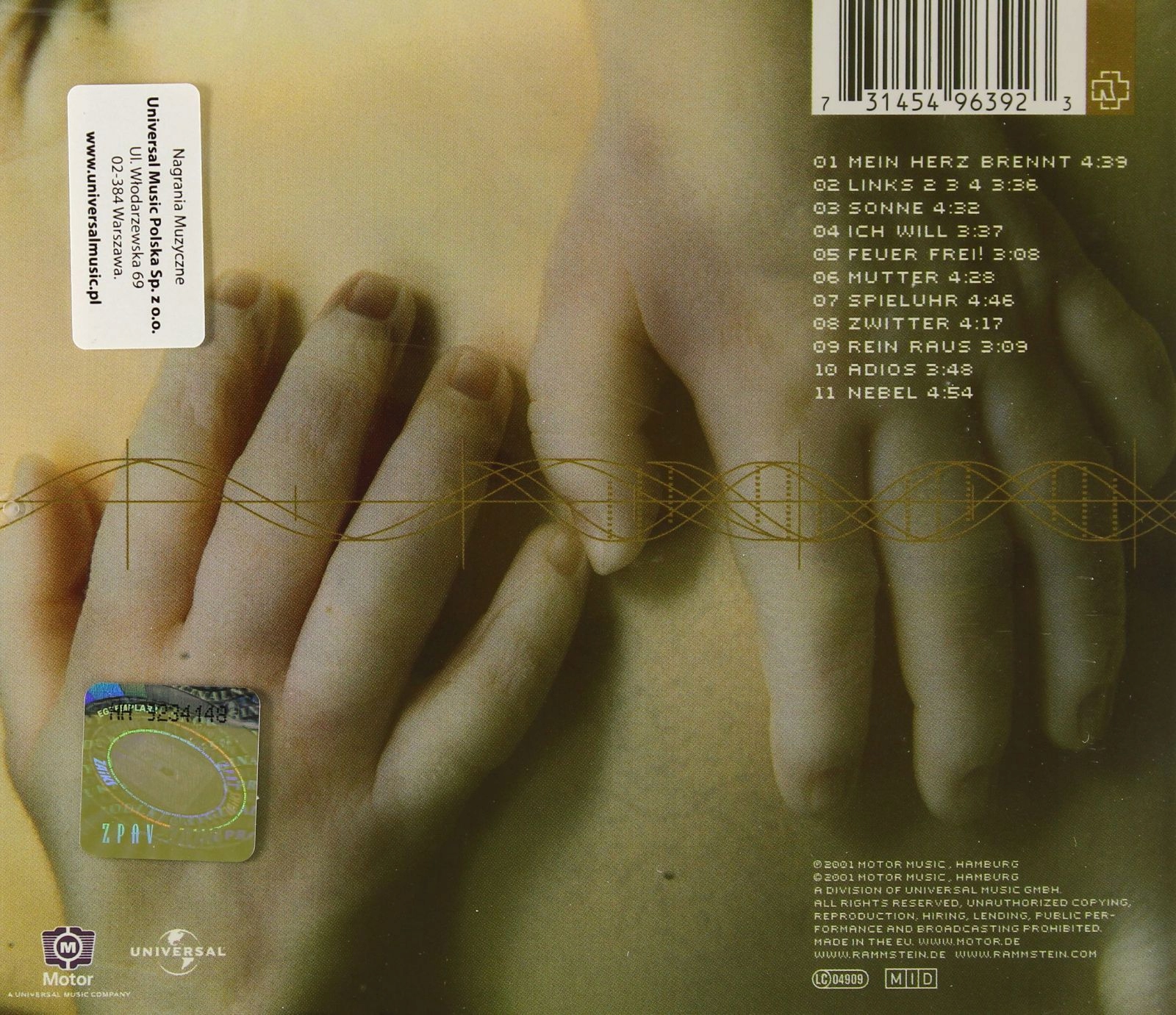Третій студійний альбом запальних (буквально! - якщо не вірите, подивіться концерт гурту) німецьких індастріалів-металістів є продовженням стилю, представленого на їхніх попередніх альбоми. Rammstein багато в чому зобов'язаний Laibach. Німці, можливо, більш «металічні» (процесії суперважких гітарних рифів вражають...), але манера співу вокаліста (використання пафосної естетики гімн-стадіон-батл), божевільні «піднесені» партії клавішних і взагалі тоталітарно-індустріальна атмосфера - цими патентами роками користуються музиканти зі Словенії. Що робить Rammstein не просто більш комерційним, спрощеним клоном Laibach, так це неоднозначні, інтригуючі тексти. Mutter – що вже є традицією у випадку Rammstein – це альбом, створений з великим розмахом та фантазією, у чому ще до його прем’єри ми могли переконатися синглом Sonne, який швидко підкорив європейські радіостанції.