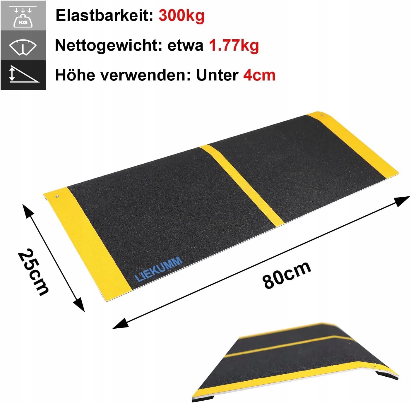 для інвалідних колячок для дверей, сходів, градусів. Алюміній, який забезпечує високу продуктивність, є нержавіючим та водонепроникним. В ідеалі підходить для використання в будь -якому місці, всередині або зовні. Порада: Будь ласка, не використовуйте на гладких плитках. Жовті наклейки з обох боків роблять пандус також чітко видно в темряві. Вони можуть бути прикріплені з гвинтами в будь -якому місці. Рекомендована висота менше 5 см. Вагою до 300 кг. Не використовуйте пандус у занадто високому місці, оскільки він не підходить.