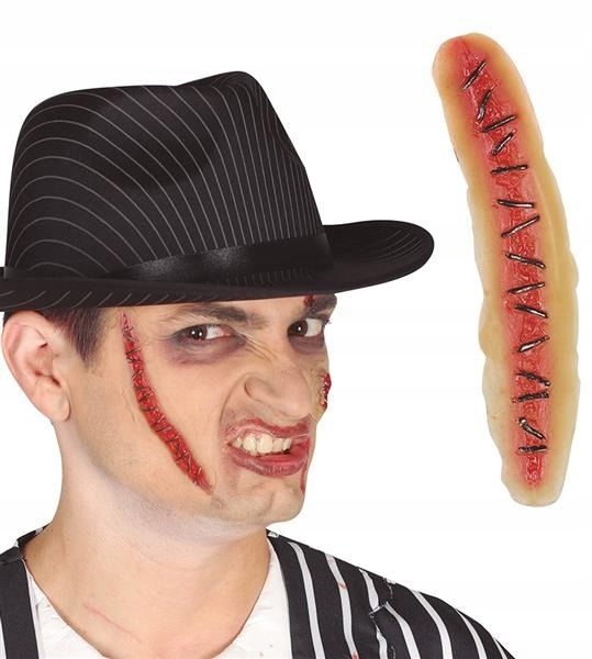 Дуже реалістична, штучна рана, прикріплена за допомогою клею у вигляді шраму зі швами.