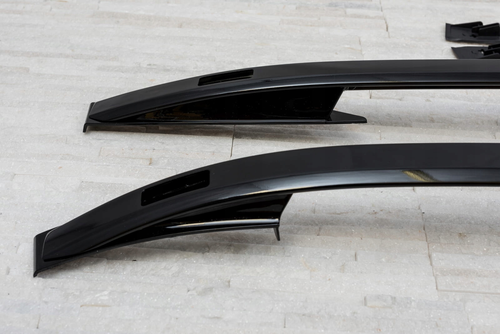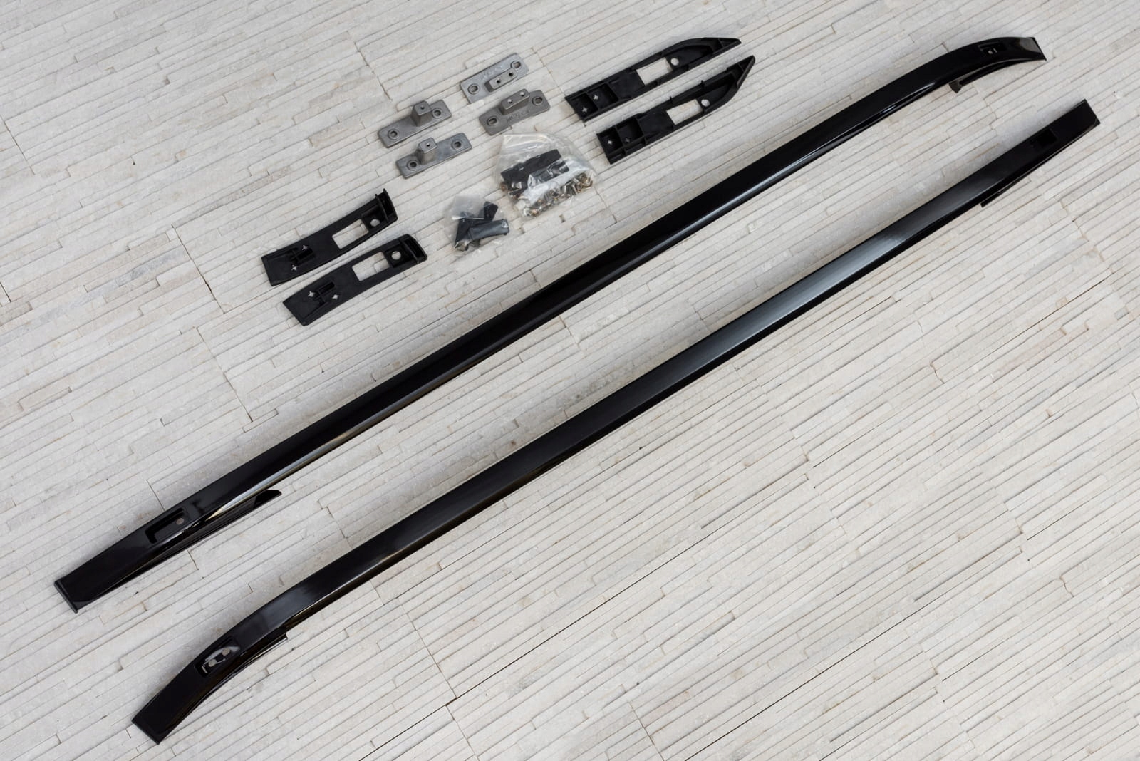 Чорні рейлінги на даху з отворами для кріплень, присвячені моделі RANGE ROVER EVOQUE 2011-2018 (для чотиридверної версії з панорамним дахом).