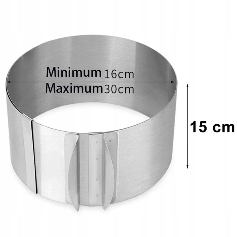 ✅ Що це за продукт і для чого це? як створення елегантних десертів з рівною та естетичною поверхнею. Регульований діаметр (16-30 см) дозволяє відповідати розміру форми з вашими потребами як маленькими та великими тортами. Завдяки цій формі вам більше не потрібно мати багато різних табличок - одного інструменту достатньо для підготовки тортів у різних розмірах.