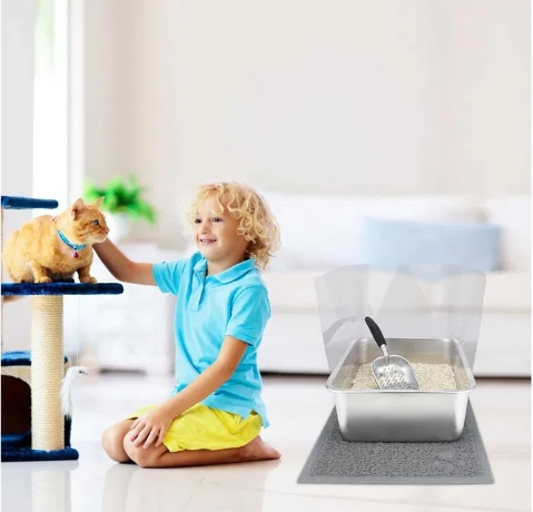 Котячий лоток із нержавіючої сталі - наш котячий туалет із нержавіючої сталі ящики міцні, стійкі до подряпин, легко миються і не іржавіють. Крім того, захист запобігає розливанню сечі та робить прибирання легшим і швидшим.