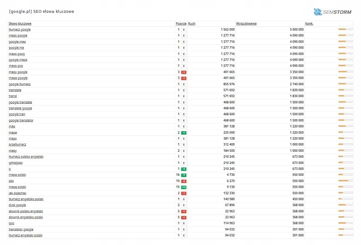Raport Semstorm - Jakie są Twoje pozycje w Google?